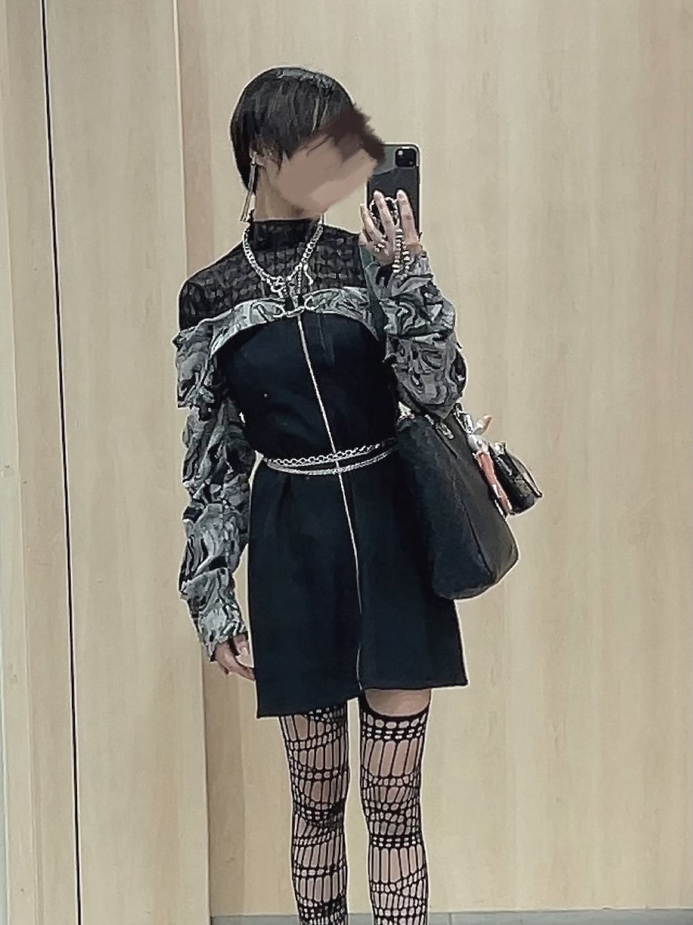 ka23s0のTシャツ/カットソー「【LVEU.】パターンレースシアートップス / トップス シアー シアートップス 長袖 レース レイヤード プチハイネック ブラック アイボリー モード系」を使ったコーディネート