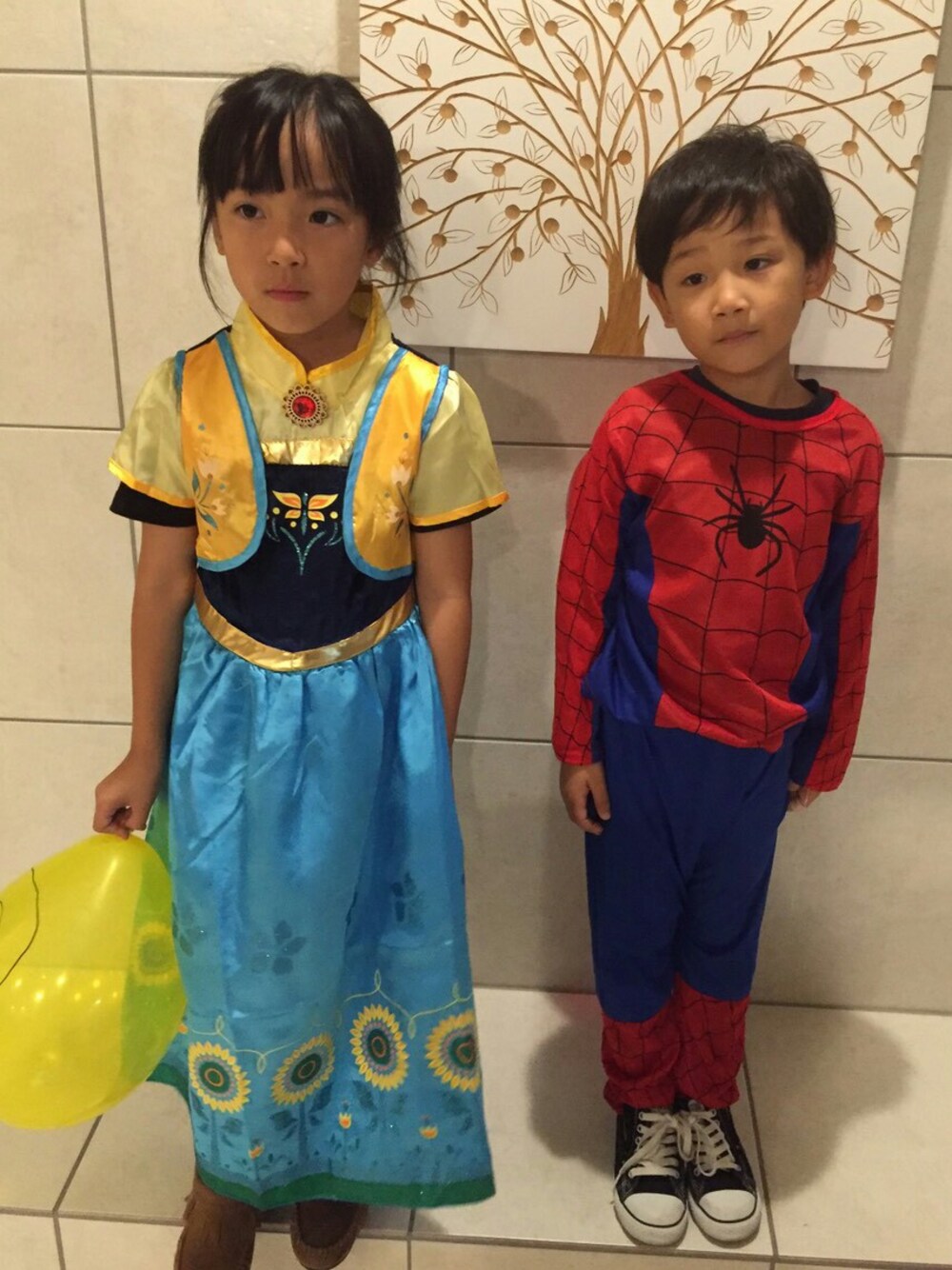 ハロウィンパーティー後でお疲れの二人😂👆💕今年はアナとスパイダーマン💥