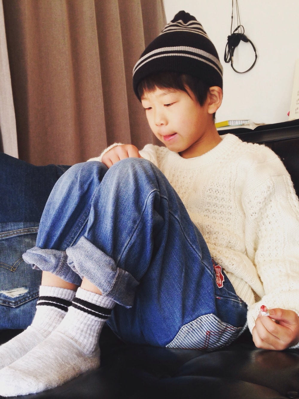 白いセーターは女っぽくて嫌!といわれたので、とりあえず記念に撮影(´Д` ) ポイントは左手に持った鼻血付きティッシュです。