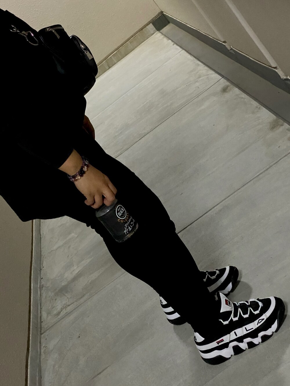 ka730のスニーカー「FILA フィラ FILA BARRICADEXT 97 LOW F04820014 BLK/WHT/FRED」を使ったコーディネート