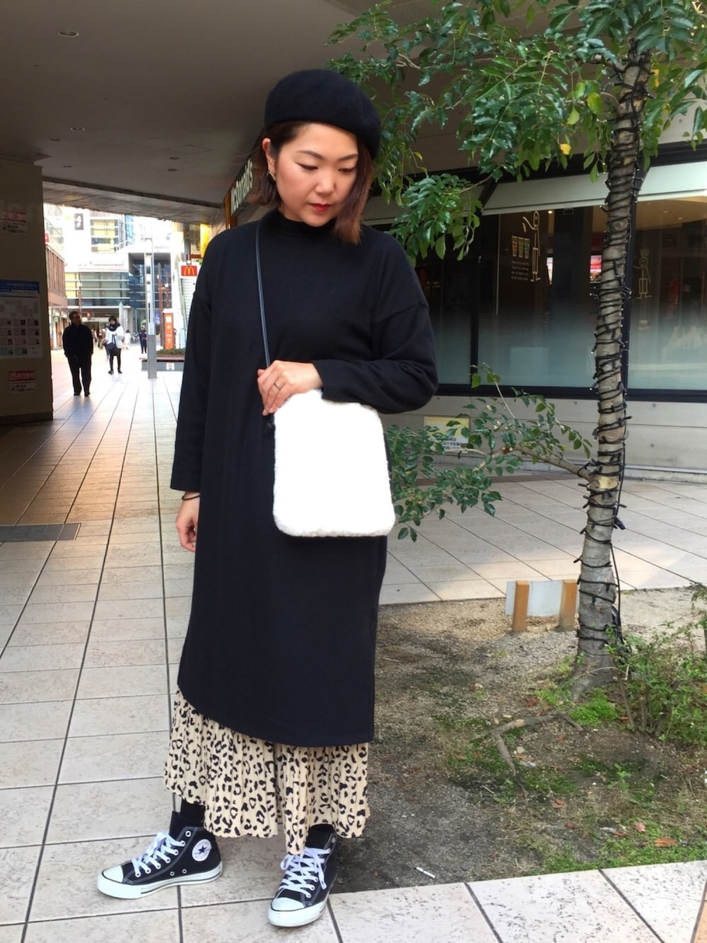 今期可愛いヒョウ柄でプリーツのスカート🐆🖤 普通にニットやパーカーで合わせても可愛いけど、スリットワンピースを合わせてロング丈にして着ても新鮮✨
