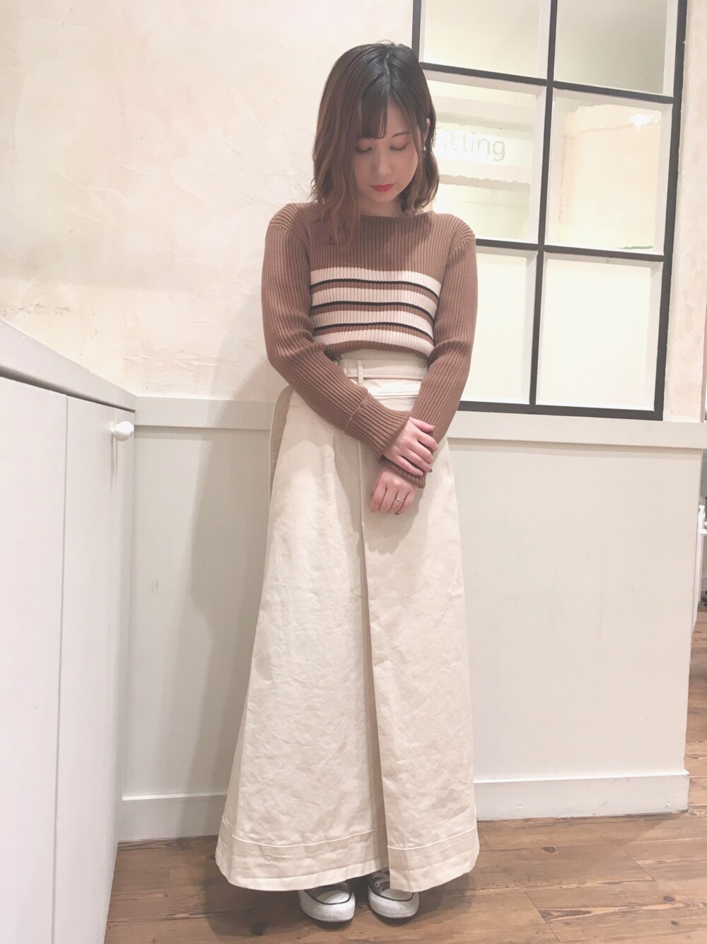 リブボーダー×チノスカート💫 他撮りだとぎこちない、、😂