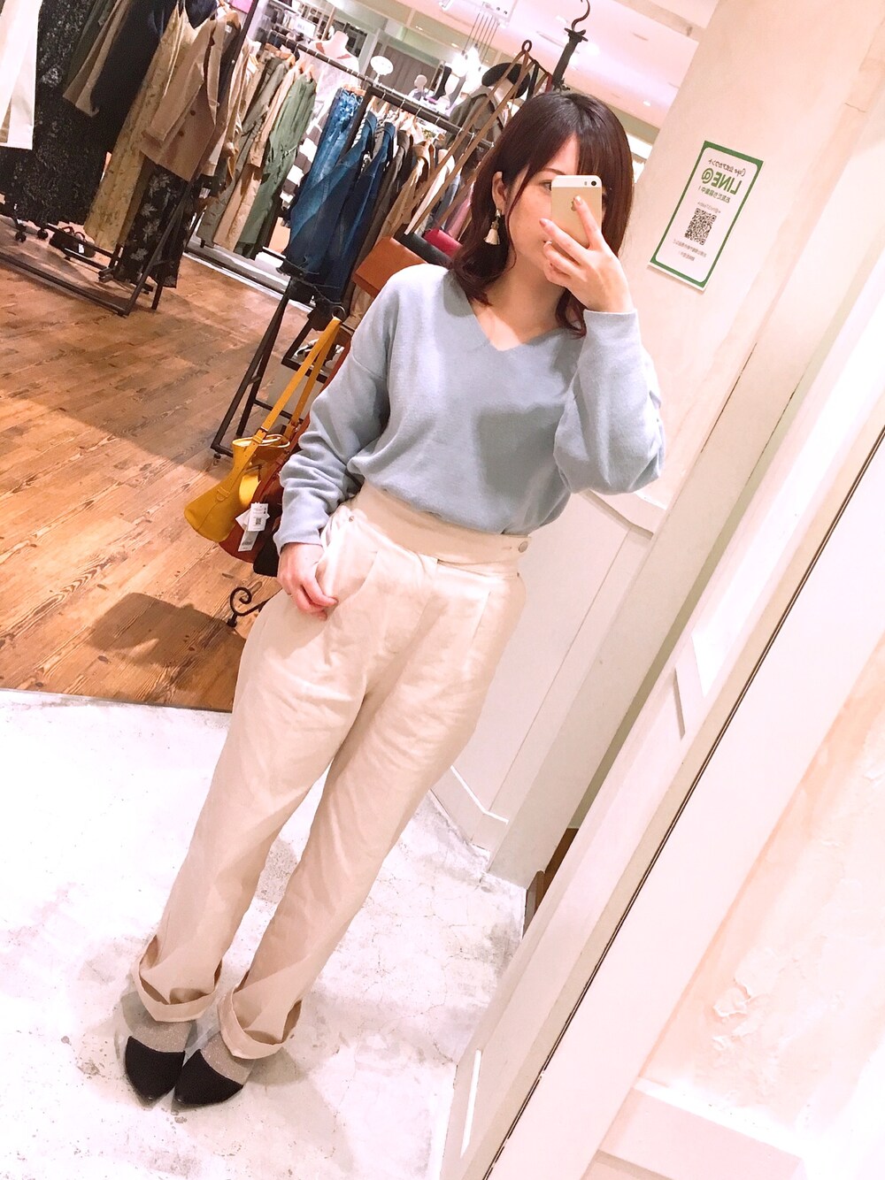 大好きな淡色の組み合わせ💓 白パン履くと春が来たなと感じますね(^○^) シンプルVに細身のパンツを合わせた少し大人っぽコーデです🌸