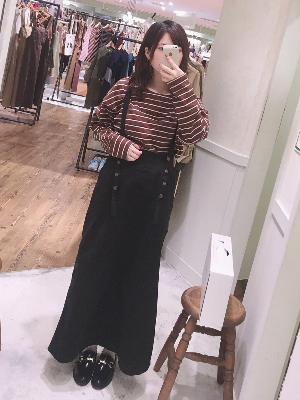 ボーダー☆ジャンスカ 濃いブラウンのボーダーは何合わせてもこなれ感が出ます✨ ジャンスカは理想の形で即決したので沢山着回ししたいです🍁