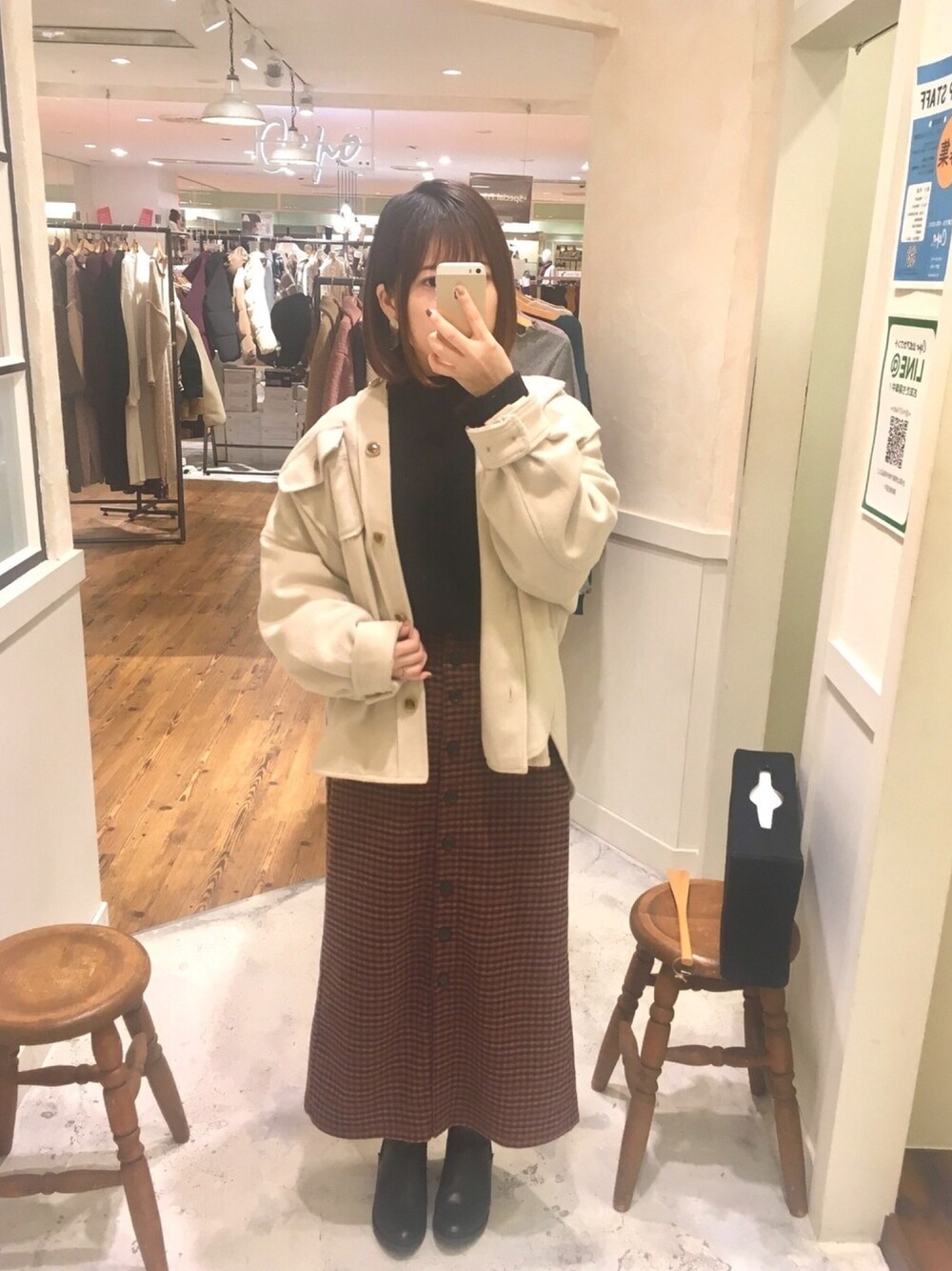 モックネックの黒ニットに一目惚れで買ったチェックスカートを合わせました🥰 シルエットが綺麗◎✔︎