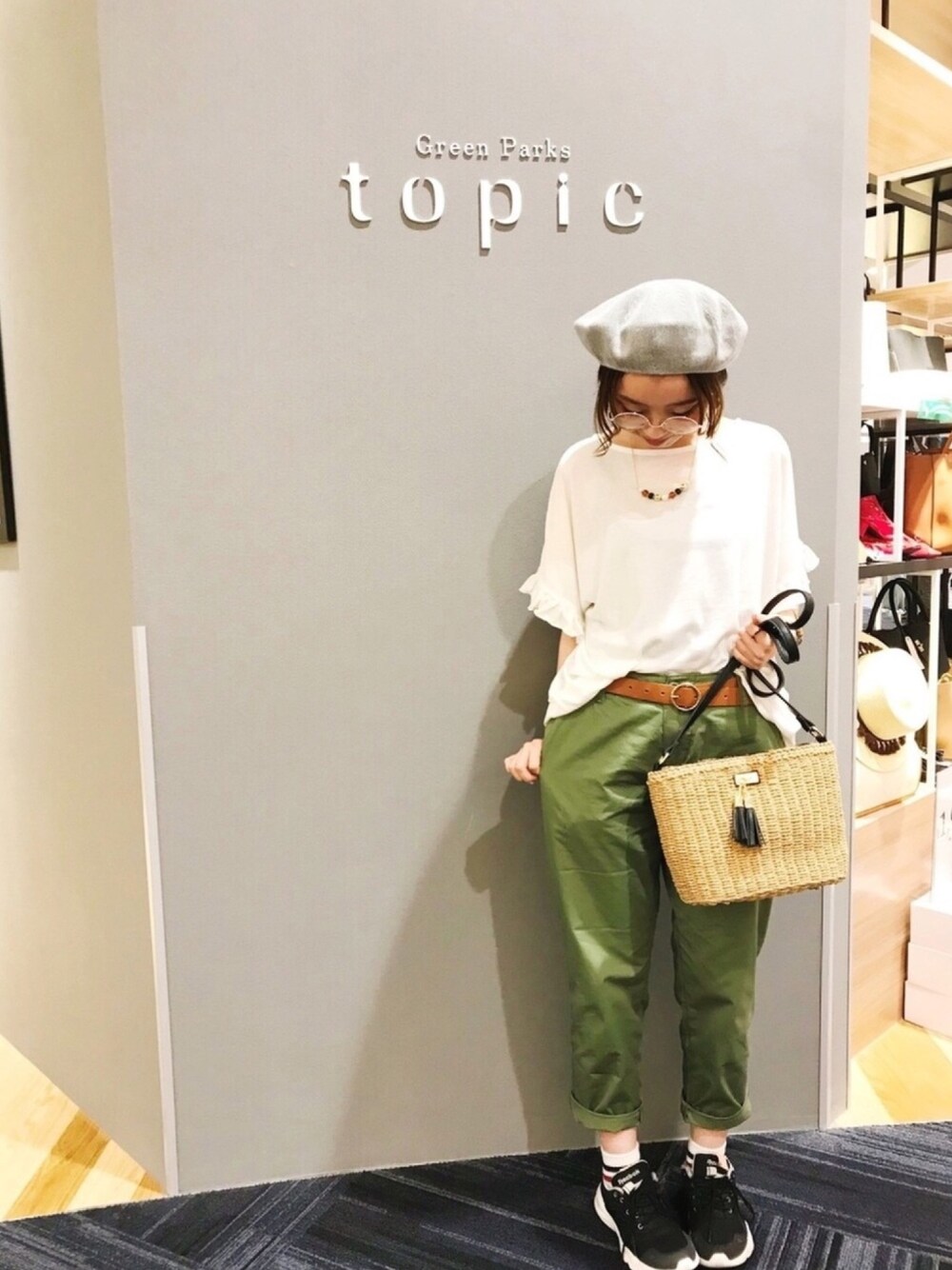 閲覧ありがとうございます! GreenParks topicイオンモール宮崎店の華愛です🐏💛 夏に向けて続々と新作アイテム入荷してます(๑⃙⃘´༥`๑⃙⃘) 今日は肩フリルの可愛いプルオーバーに カーキのチノパンツを合わせました😚 どのお洋服もプチブラ価格でお財布にも優しいです👛✨ シンプルなチノパンツはベルトでたっっくさん遊べます! 足首ロールアップで細身え効果抜群です♪♪ 肌寒い時はGジャンをさらりと 羽織ってもカジュアルで可愛いです💖
