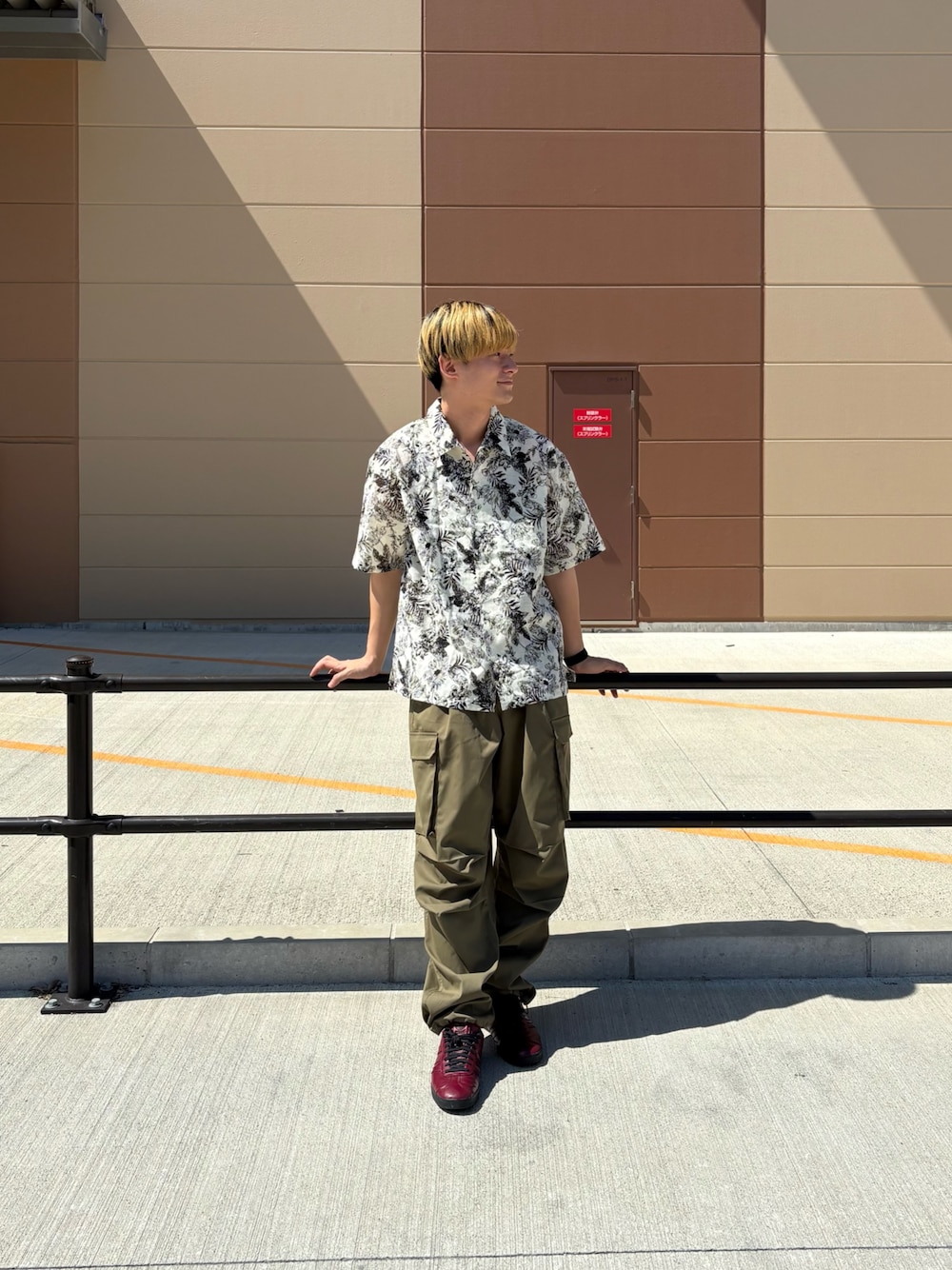 【トップス】着用サイズ:L モノトーンで描かれたボタニカル柄がさりげなく個性を主張する、差がつく一枚。 落ち着いた色使いなので、どんなシーンにもマッチします。 主張しすぎないボタニカル柄は、大人の余裕を演出しタウンユースとしてはもちろん、リゾート地でのリラックススタイルにも最適。 シンプルなボトムスと合わせるだけで、コーディネートが完成。 目の粗いメッシュタイプの素材を使用しているため、通気性が良くさらっと快適な着心地なのもうれしいポイント。 【ボトム】着用サイズ:L 柔らかく伸縮性のある素材を使用したカーゴパンツです。 サイドには大きなフラップポケットが配置されており、小物を簡単に収納できるだけでなくコーデのアクセントにもなります。 膝部分にタックを施すことで、動きやすさを持たせつつ立体感のあるリラックスしたシルエットになっております。 タフな印象を与えつつも、ストレッチ素材でフィット感と快適さを兼ね備えたアイテムで、 裾にはドローコードがついているので、裾のフィット感を自分好みに変えることができスタイルに変化をつけることができます。 また、裾部分を絞ることで足元が引き締まりシルエットにメリハリを持たせることができます。 ウエストは紐とゴムで楽な穿き心地になっております。