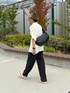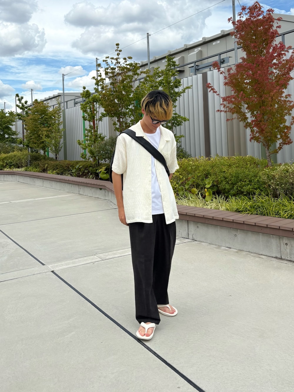 【シャツ】着用サイズ:M 凹凸感のある楊柳生地に、繊細な柄を織り込んだジャガード織りを掛け合わせた、涼感と上質さを兼ね備えた半袖シャツです。 表面に細かなシボがあるので、肌に張り付かずべたつきを抑え暑い季節でも快適に過ごせます。 生地全体に織り込まれた模様は、プリントとは異なる立体感と奥行きがあり品のある仕上がりで、 見る角度や光の加減でさりげなく浮かび上がる柄は主張しすぎず、コーデにアクセントを加えてくれます。 オープンカラー仕様で首元もスッキリ見えるだけでなく、涼しく清涼感があり夏に欠かせないデザインになっております。 【インナー】着用サイズ:M シンプルな着こなしでも、個性を演出できるノースリーブTシャツです。 肩のラインを自然にカバーし、腕まわりをすっきり細見えさせるカッティングデザインになっております。 デニムやチノパンと合わせた定番カジュアルスタイルはもちろん、ジャケットやシャツを羽織ればより洗練された印象に。 アクセサリーとの相性も抜群で、ネックレスやブレスレットをプラスすれば、さらに自分らしさを際立たせることができます。 【ボトム】着用サイズ:M 上品な光沢ととろけるような肌触りが特徴の“パウダートロ”素材を使用したパンツです。 リラックス感のある穿き心地と、美しい落ち感を兼ね備えた1着になっております。 “パウダートロ”とは、微起毛感のあるパウダリーなタッチと、レーヨン混ならではの滑らかな落ち感が魅力の生地です。 動くたびに自然なドレープが生まれ、楽な穿き心地ながらも上品な印象になります。 ウエストはゴム仕様+ドローコード付きで、好みのフィット感で着用していただけます。 ややゆとりのあるストレートシルエットが縦のラインを強調し、スタイルアップ効果も期待できます。 【シューズ】 シンプルなデザインでカジュアルなコーデはもちろん、幅広いコーデに合わせやすい一足。 軽くて足にフィットしやすく、クッション性が高いソールで歩きやすい形になっているので足運びがしやすい◎ 程よいボリューム感のあるフォルムでスタイルアップ効果もできます。 【バッグ】 荷物の持ち運びが快適になるビッグショルダーバッグ。 太めのショルダーストラップで安定感があり、肩への負担も軽減◎ トレンドのハーフムーン型にスタイリッシュなフォルム、 きちんと見えしながらもカジュアルスタイルにも溶け込む優秀アイテム。 通勤・通学バッグとしてや旅行などにも使用していただけます。 【アイウェア】 コロンと丸みを帯びたデザインで目元のワンポイントにおすすめ◎ 厚みのあるデザインで物足りないコーディートのワンポイントに 薄目のカラーレンズですが。かけるとしっかりと光を防ぎ毎日つけたいアイテム