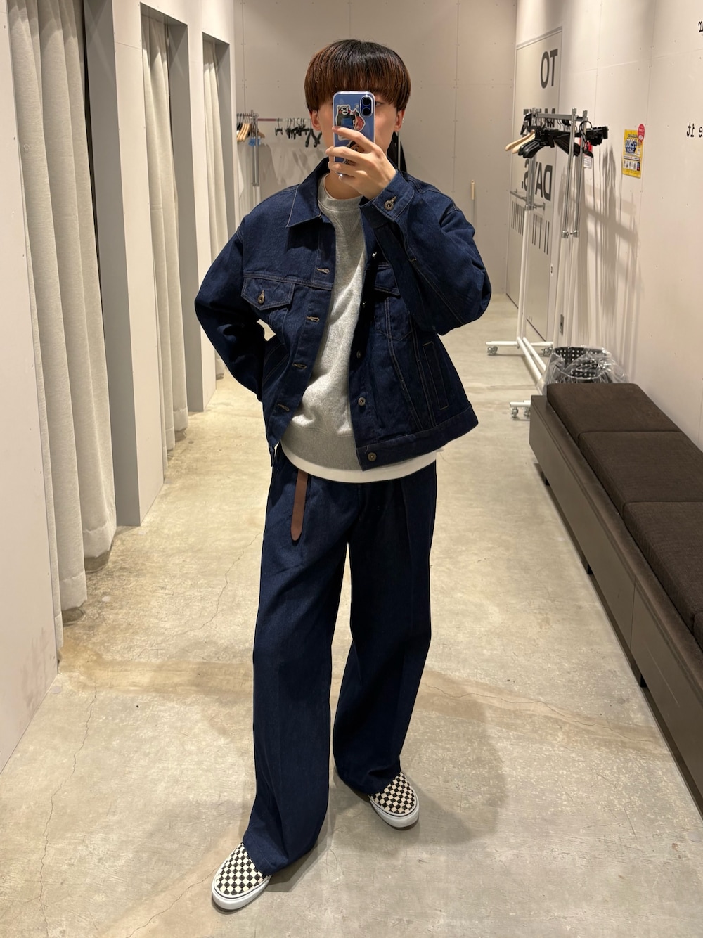 僕のイチオシのデニムセットアップです! 中にはシンプルなグレーのスウェットでラフな印象にしてます。 昼はデニムジャケットを脱いで、夜は織って様々な着方ができます。 もちろんセットアップとしてではなく単体でもかっこよく着れます!