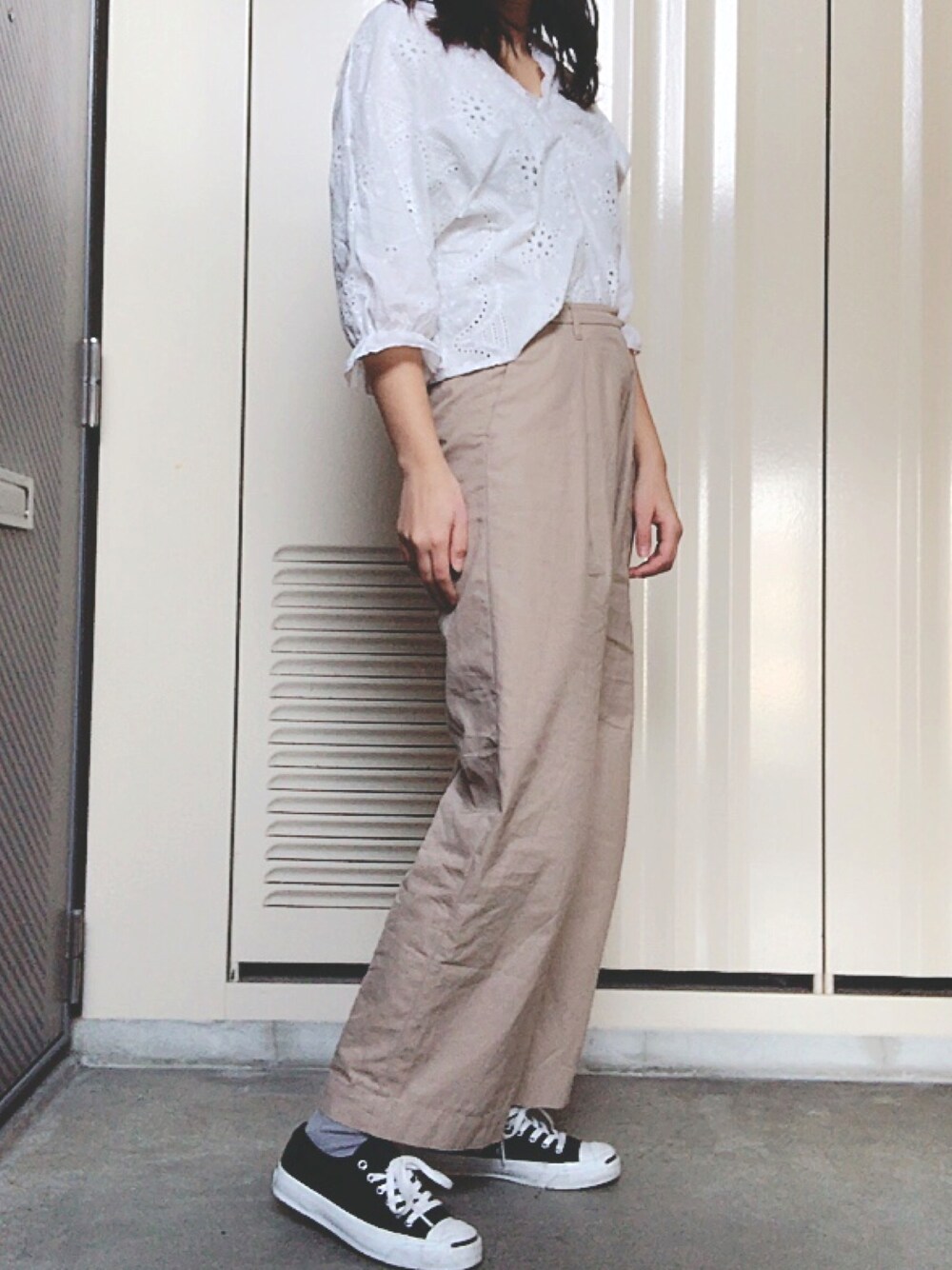 KAEDEのチノパンツ「キャンバスワイドパンツ/713273 」を使ったコーディネート