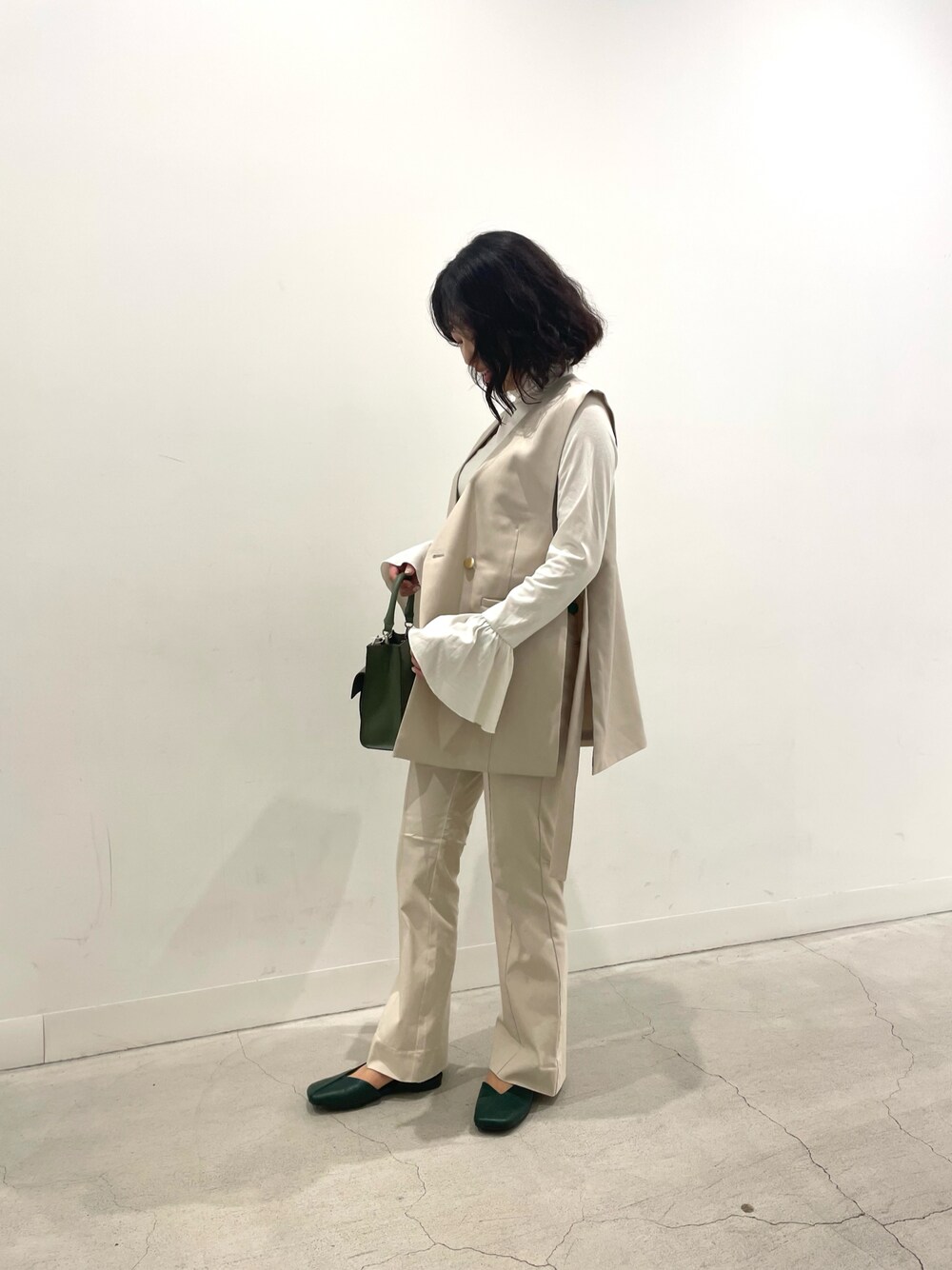 閲覧ありがとうございます𓅿♡ 少しずつ気候も穏やかになってきましたが、 皆様いかがお過ごしでしょうか🌥 今回は秋の新作アイテムを使った 大好きなワントーンコーデです𓂃𓈒𓏸 グリーンの差し色でまとめてみました。 インナーの袖は長すぎないので着やすく、 フレアなので可愛らしさも魅せられます♡ パンツはSサイズを着用中です。 身長160cmの私でちょうどよく着られています☺︎(ご飯食べるとちょっとキツイけど!笑) サイズ展開が幅広いので、体型に合ったものが見つかりやすいかと思います💭 気になった方は、ぜひお試しください☺︎