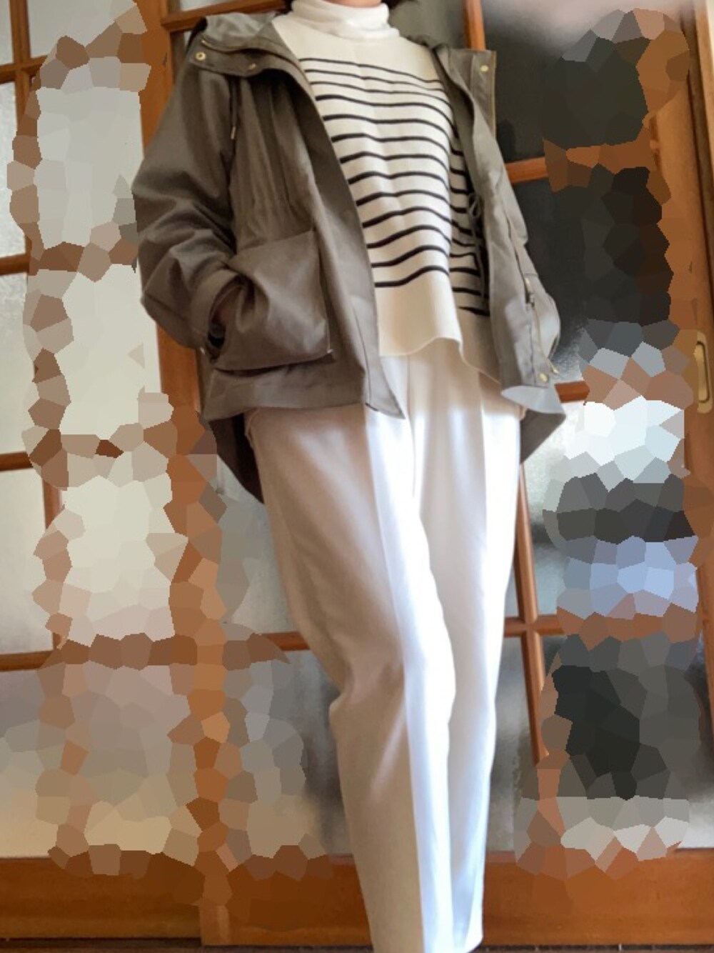 グローバルワークの美シルエットパンツ、お気に入り 春ニット色違い欲しい マンパは冬に買ったけど、中のボアを取り外したら今ちょうどいい