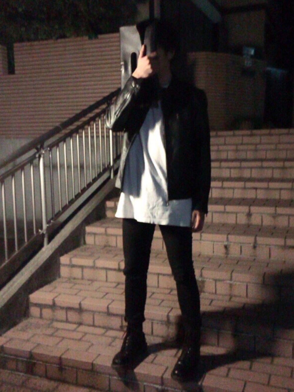初投稿です! 黒のレザージャケットに白T、黒スキニーにマーチンのシンプルコーデですが、Tシャツ長めで裾見せてみましたー 是非フォローいいねお願いします!