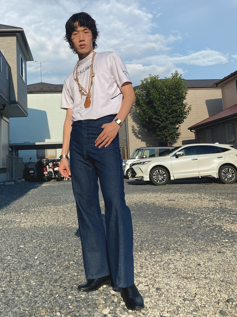 この上下のセットが好きなんだけどなんか物足りなくてGUのキークロシェットをプラス。 さらにもうひとクセ欲しくて未だになんの用途なのかわかんない謎のチェーンを首元にプラス。 夏はやっぱりアクセサリーの重ね付けで個性出すのが王道っすね! ーーーーーーーーーーーーーーーーーーーー インスタ始めました!コーデ以外も発信していく予定なのでフォローしてお待ちください @waxing_mood