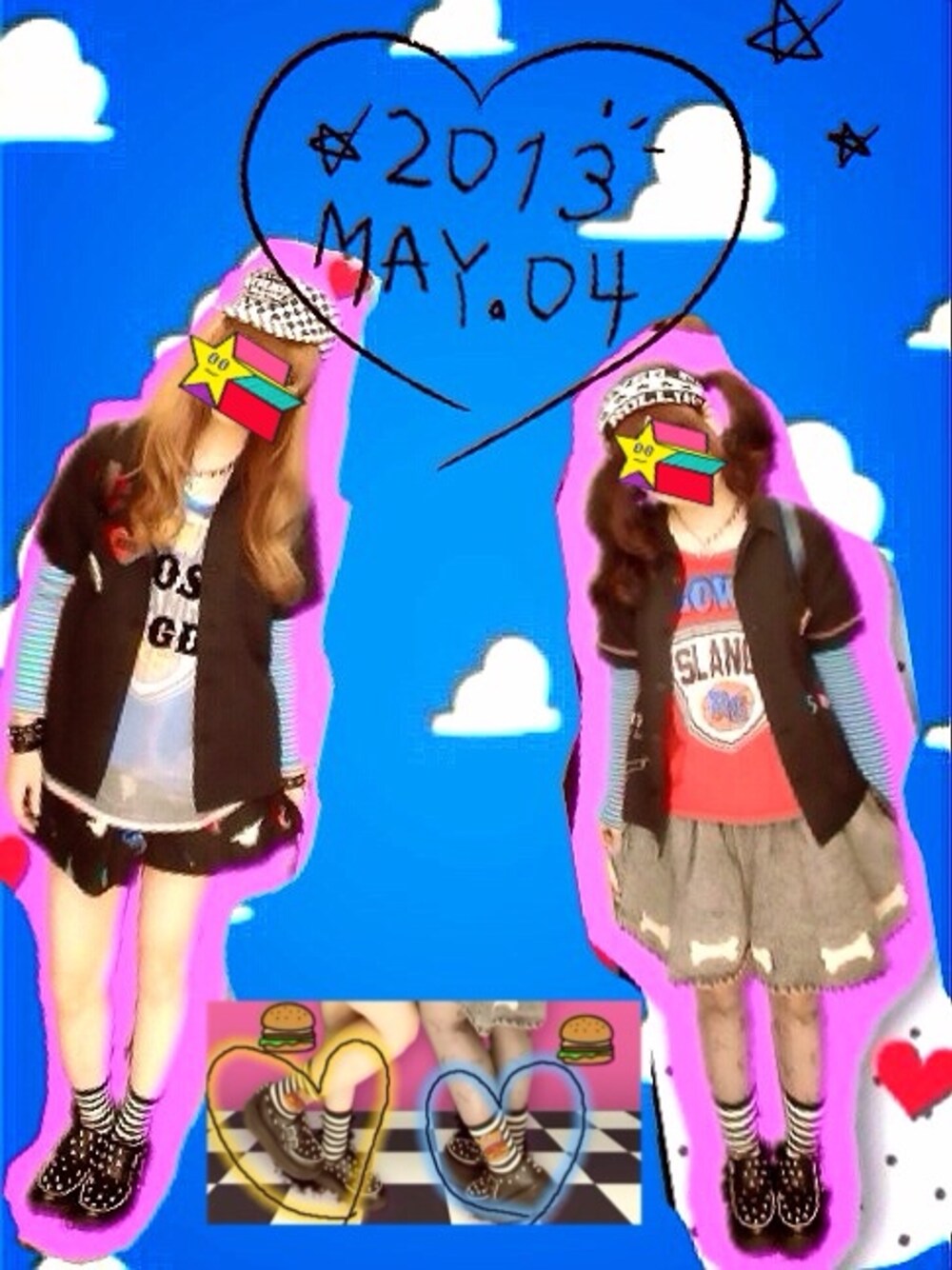最近画像を編集してみているー!( *`ω´) ちょいちょい懐かしコーデを 載せてこうと思う これは去年のGWにまーちゃんと 京都行った時のやつ♡ このちょいと合わせた感じお気に入り 私はみぎー( *`ω´)