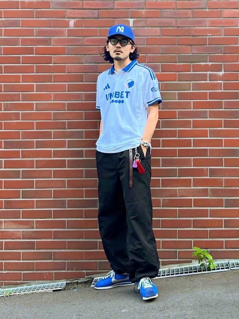 デンマークのお土産でFCコペンハーゲンのゲームシャツをもらったのでさっそく。 ちょいマイナー(失礼)なところが逆に◎。 shirt:adidas "FC København" inner:Hanes pants:BEN DAVIS shoes:NIKE cap:Cooperstown Ball Cap glasses:JULIUS TART OPTICAL belt:Jabez Cliff accessories:CHROME HEARTS socks:KAVU