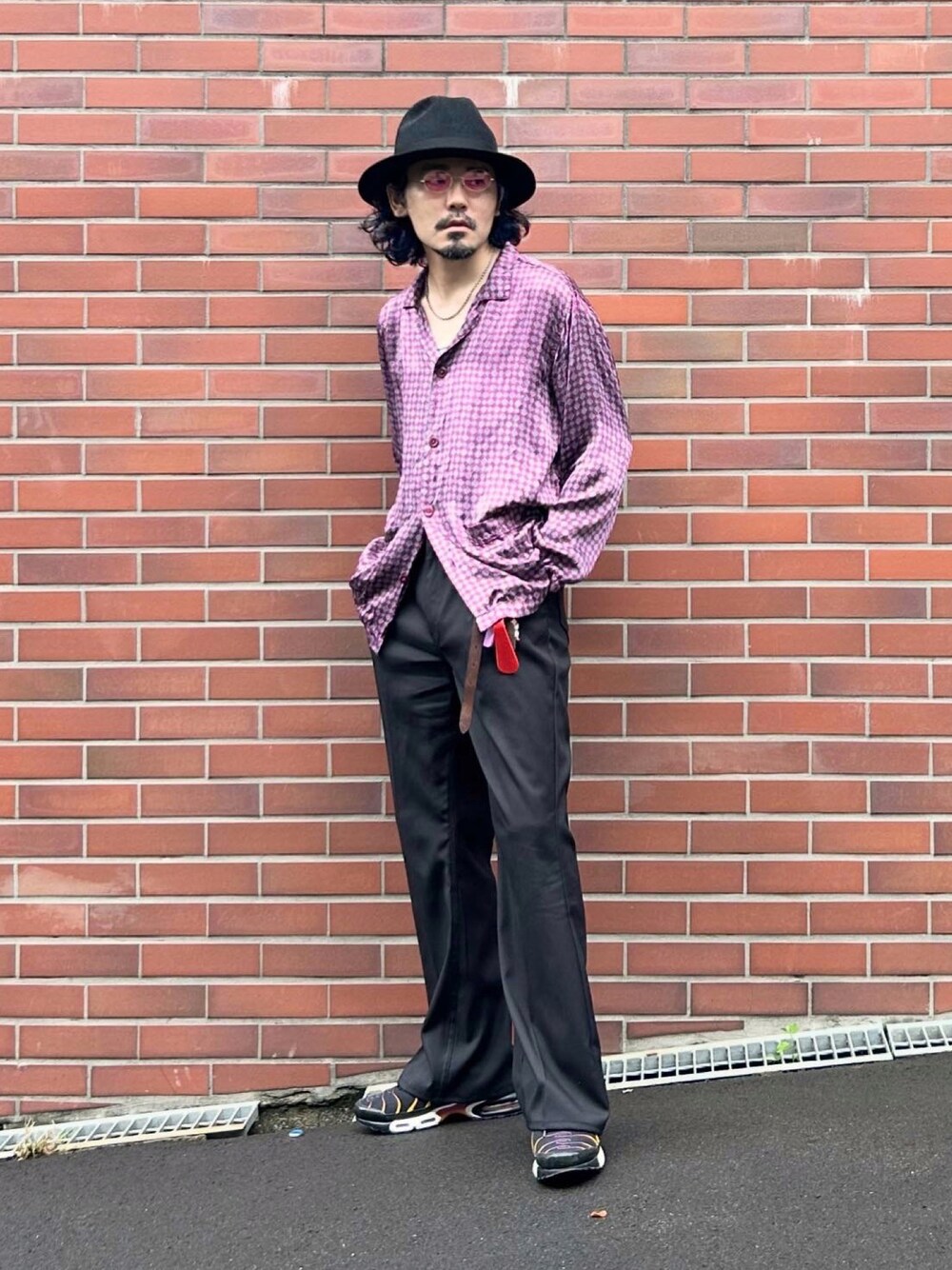 大きく開いた胸元とシルクのドレープ感が色気たっぷり。 そんな色気を損なわないアイテムを合わせつつも足元はエアマックスでちょいハズし。 shirt:60's brand unknown inner:Hanes pants:Wrangler shoes:NIKE hat:Borsalino glasses:90's CUTLER AND GROSS belt:Jabez Cliff underwear:WACOAL MEN socks:RoToTo accessories:CHROME HEARTS