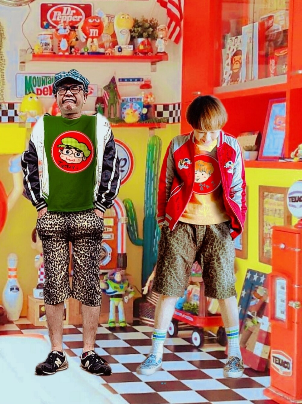 ずんこりんから”ほんの気持ち”と スィーツが届いたよ😽✨ 甘くて美味しいマドレーヌ💖 パンダのポップアップカードには、 お礼の言葉と落書きが。 ずんこりんがさらさらと描いた たつきとずんこ。 あまりに可愛くて瞳まん丸くしてウキウキ✨こりゃTシャツにして 互いに着てみたい!と衝動にかられ、 すぐさま画像加工! 落書きだけ抜き出して、 色をつけて、 たつきとずんこのシャツにぺったんこ💖 背景はやっぱりアメリカンレトロなカラフルポップな部屋。 似合うというより、この部屋の雑貨の一部のようなふたり😝🤭✨ 加工しながらスィーツむさぼってたら、完食😱 あ😳‼️ 写真撮ったっけ? と、あせったが、ちゃんと一枚撮影してました😅