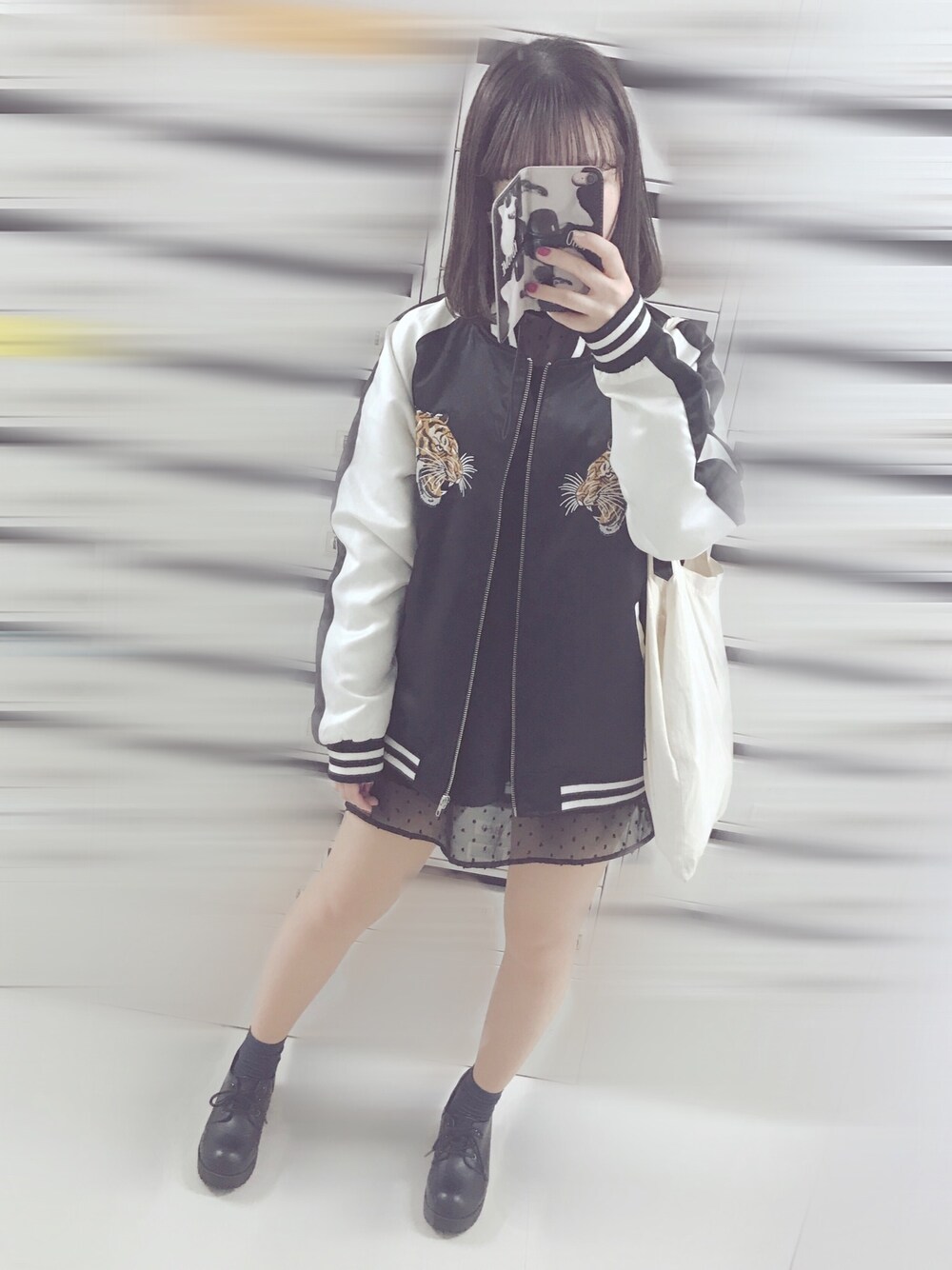 昨日コーデ🐱 少し寒くなったのでスカジャンを おろしました(^。^) アウター一枚羽織って ちょうどいいくらいの気温が 1番いいですね◎