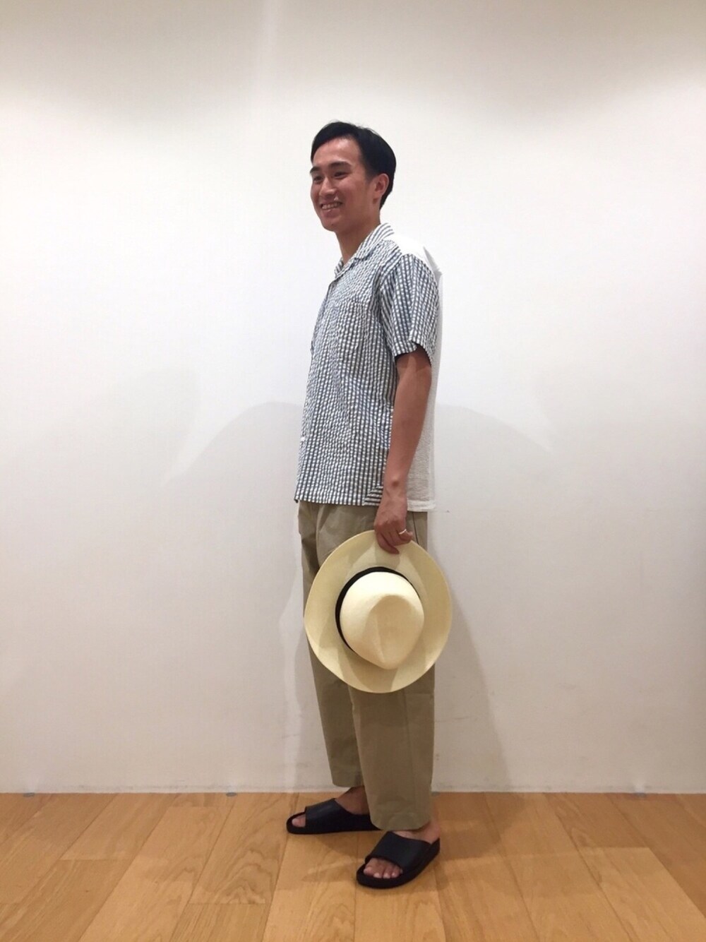 OLDER BROTHERの涼しげなシアサッカー素材のシャツは、バイカラーがポイント。 シャツを主役にシンプルなイージーパンツと合わせて。 (スタッフ 松本)