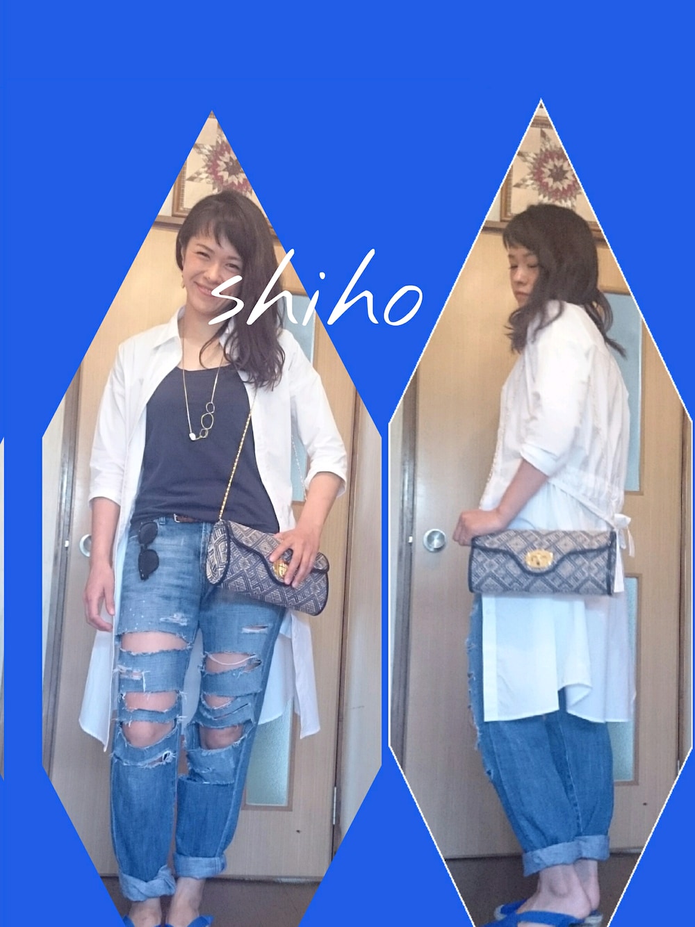 青でまとめてみました! この白シャツワンピをワンピとして着たらめっちゃ女子になーるー! ワンピとして着れる日がくるのか。。