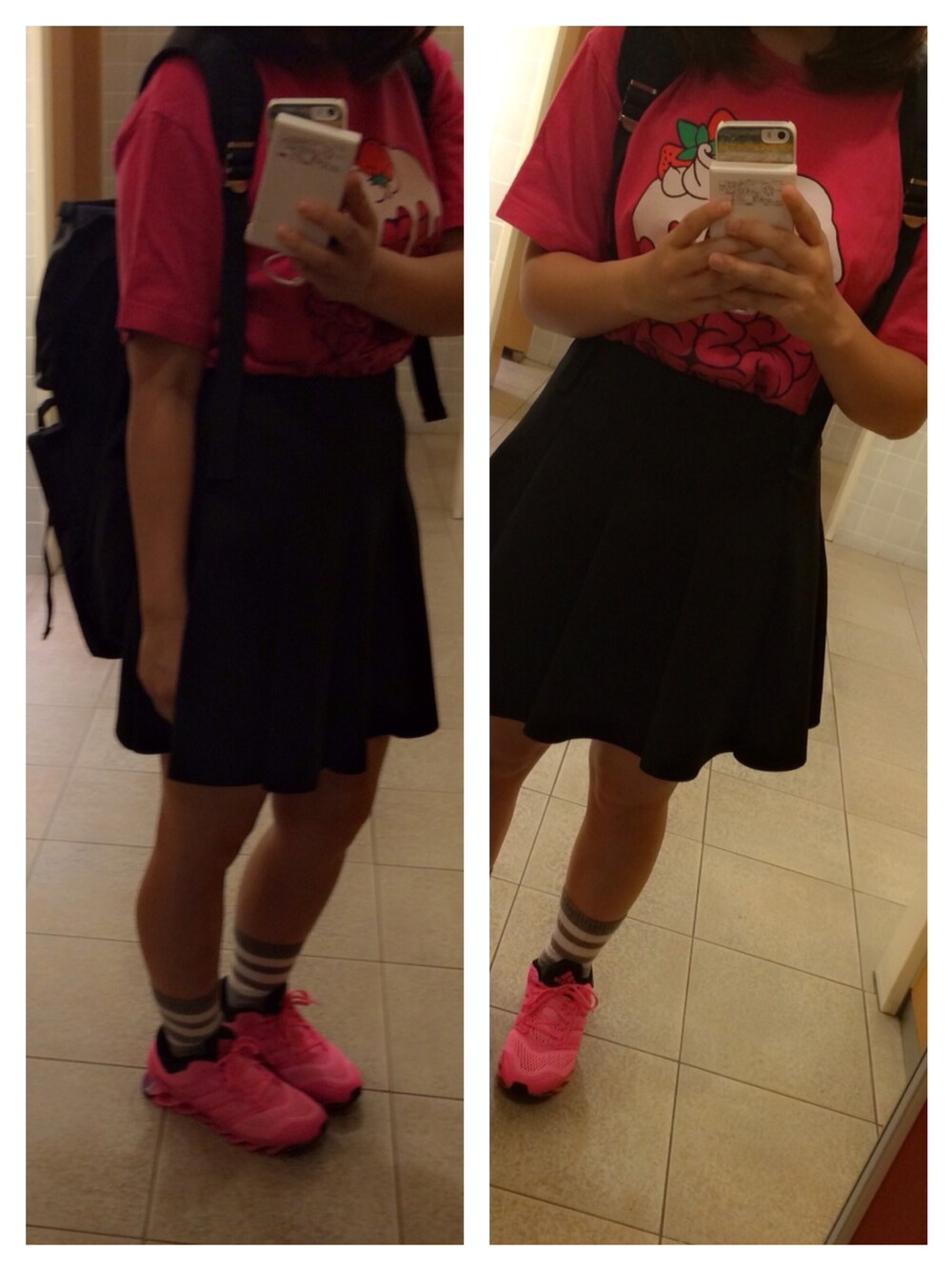 スピンズで買ったおっきいバックパックとアディダスのランニングシューズ履きたくて、ピンク×黒でまとめました( ・θ・)