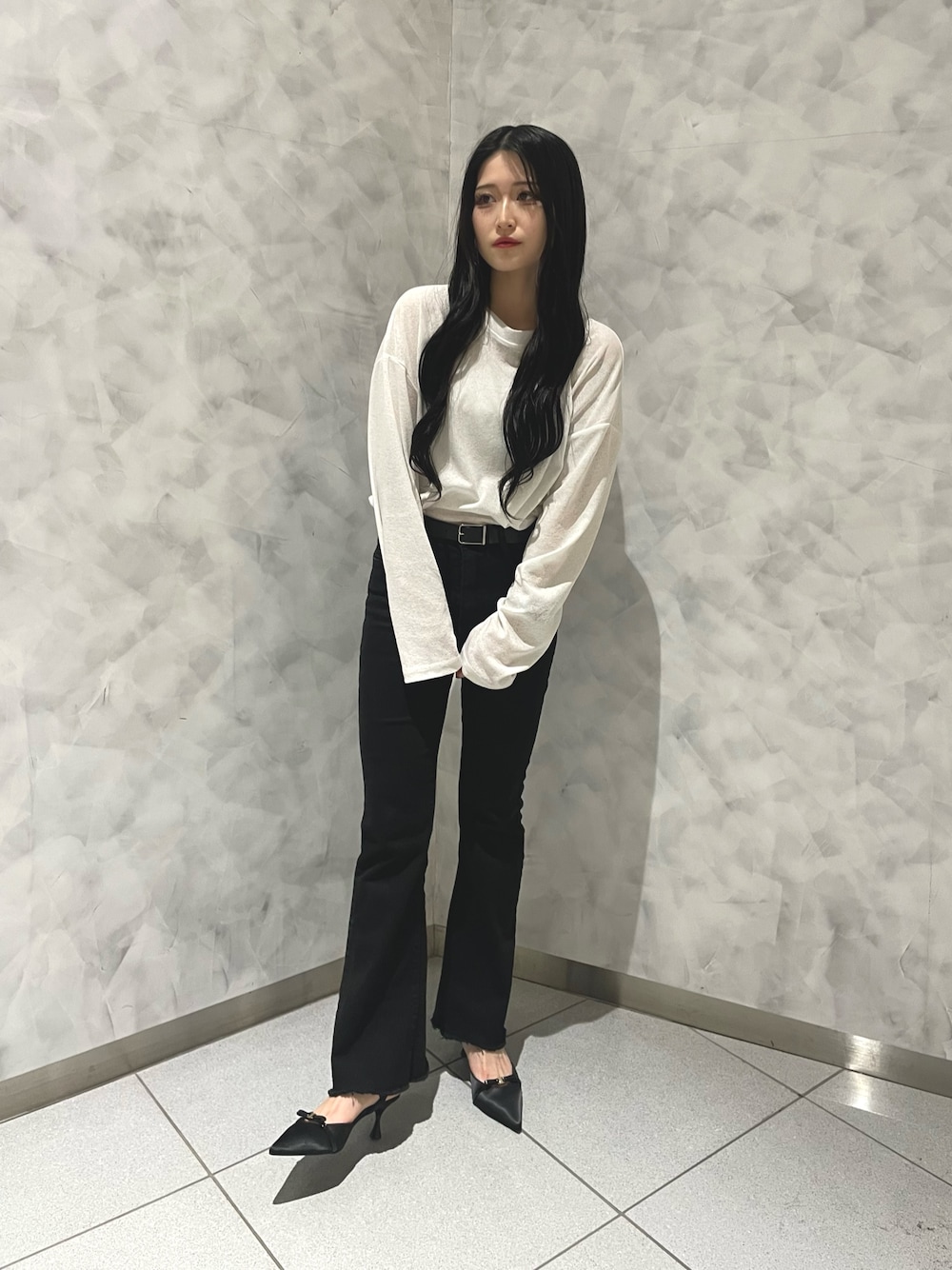 かえで(EVOL(イーボル)有楽町マルイ店)のパンプス「【ふかふか・クッション入り】ポインテッド5.5cmリボンストラップパンプス CA23853」を使ったコーディネート
