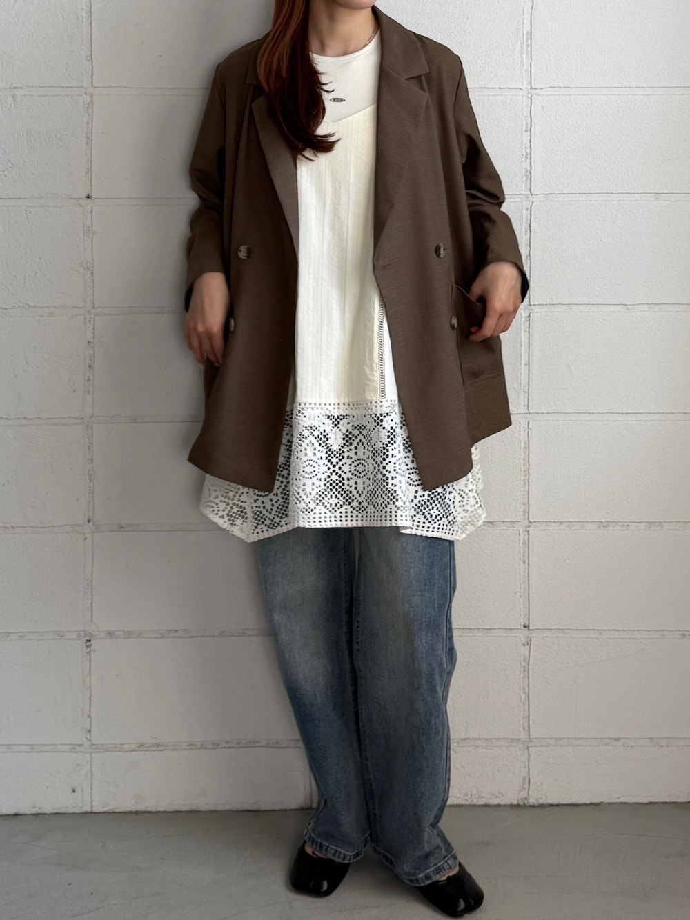Babからミニワンピースが登場! ややオーバーサイズのジャケットとも相性抜群です! ジャケットも、涼しげな素材なのでレイヤードしたいけど暑い。。という秋にぴったりです!