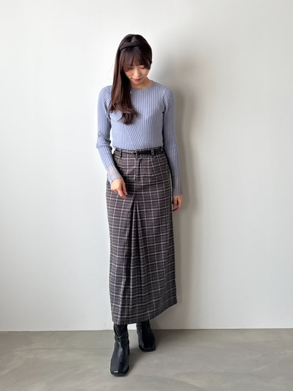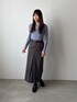 秋は一枚で着たいシアー使い配色リブニット 淡い青みのカラーなのでブラックやグレーかかったブラウンもまとまりがいいです! 腕ひゃシアー使いされているのでリブニット1枚で着映えします^^