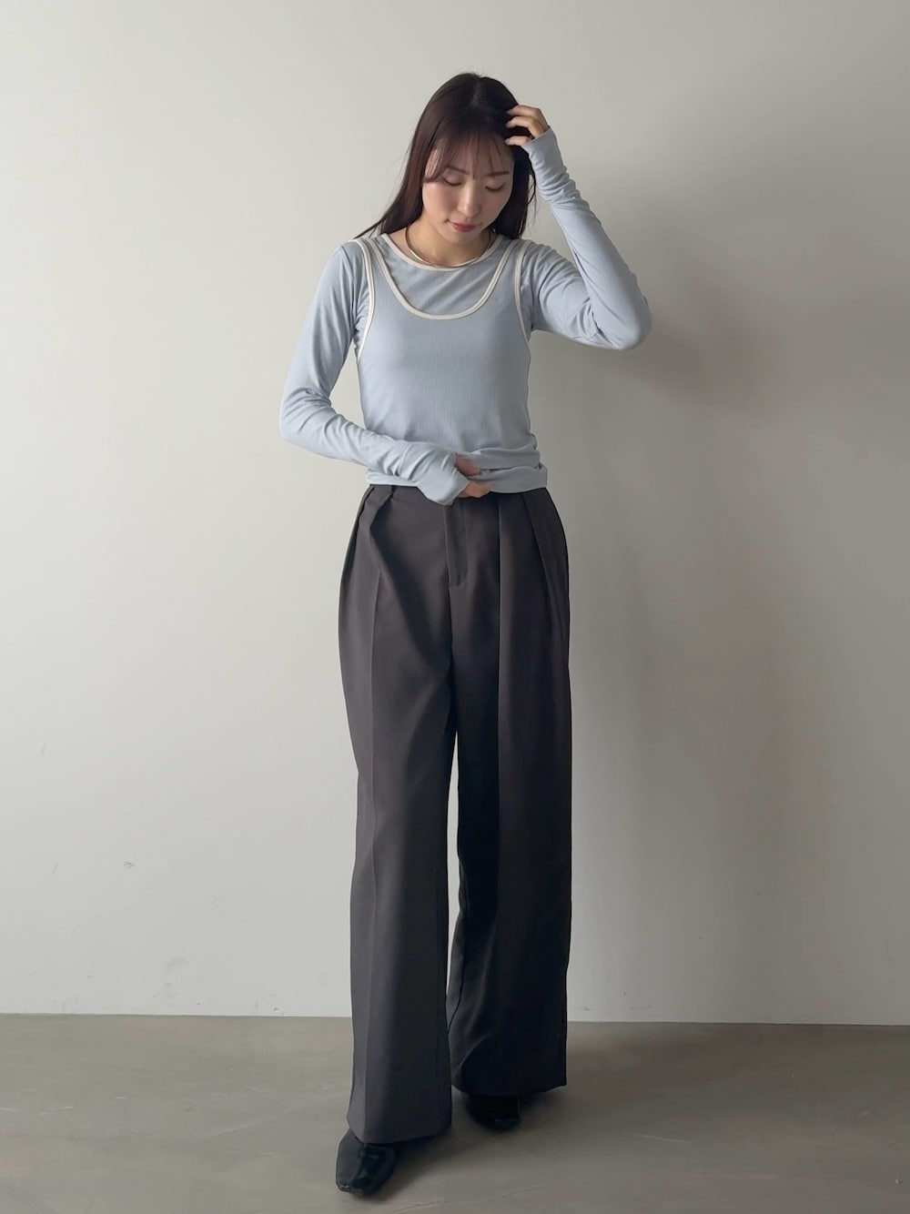 タンクとカットソーがセットになったアイテム♡ ホワイトのパイピングでメリハリがつくので ツータックパンツに合わせるだけでもボヤッとせずまとまりのあるコーデになります♩