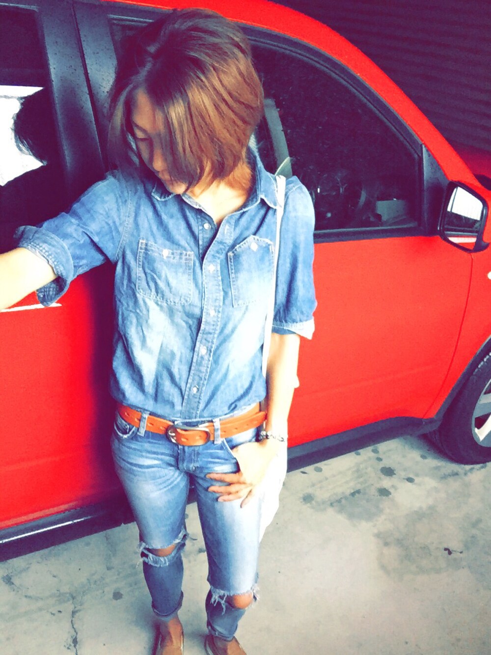 デニム×デニム好き♡ カッコよく見えるから好き♡ ハーフスリーブのデニムシャツもお気に入り\ ♪♪ / 何にでも合わせやすい色落ちがイイっ コレにハンドメイドオーダーしたクラッチバッグ、早く合わせたいなー\ ♪♪ / Instagram✧ \( °∀° )/ ✧kae0525よろ。