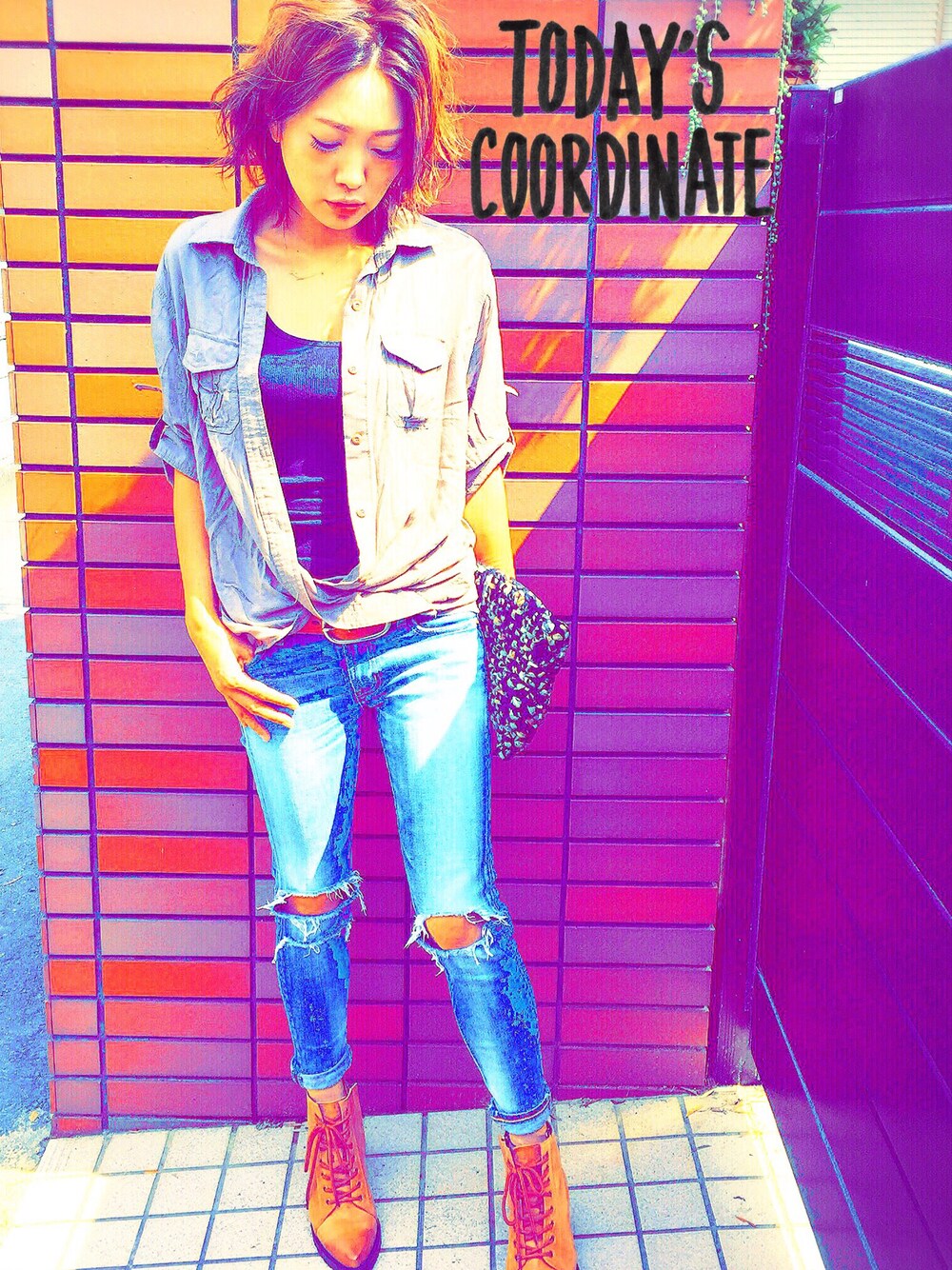 goaのカーキのてろてろシャツ\ ♪♪ / これ気にいっててずっと使ってるな~\ ♪♪ / 2wayで使える٩(Ü*)۶ 一応息子とシャツ×デニムをリンクさせてます♪̊̈♪̆̈ ハンドメイドのクラッチバッグはどストライクでお気に入り( ˙³˙)⇝💕 ハンドメイド物好きです♡