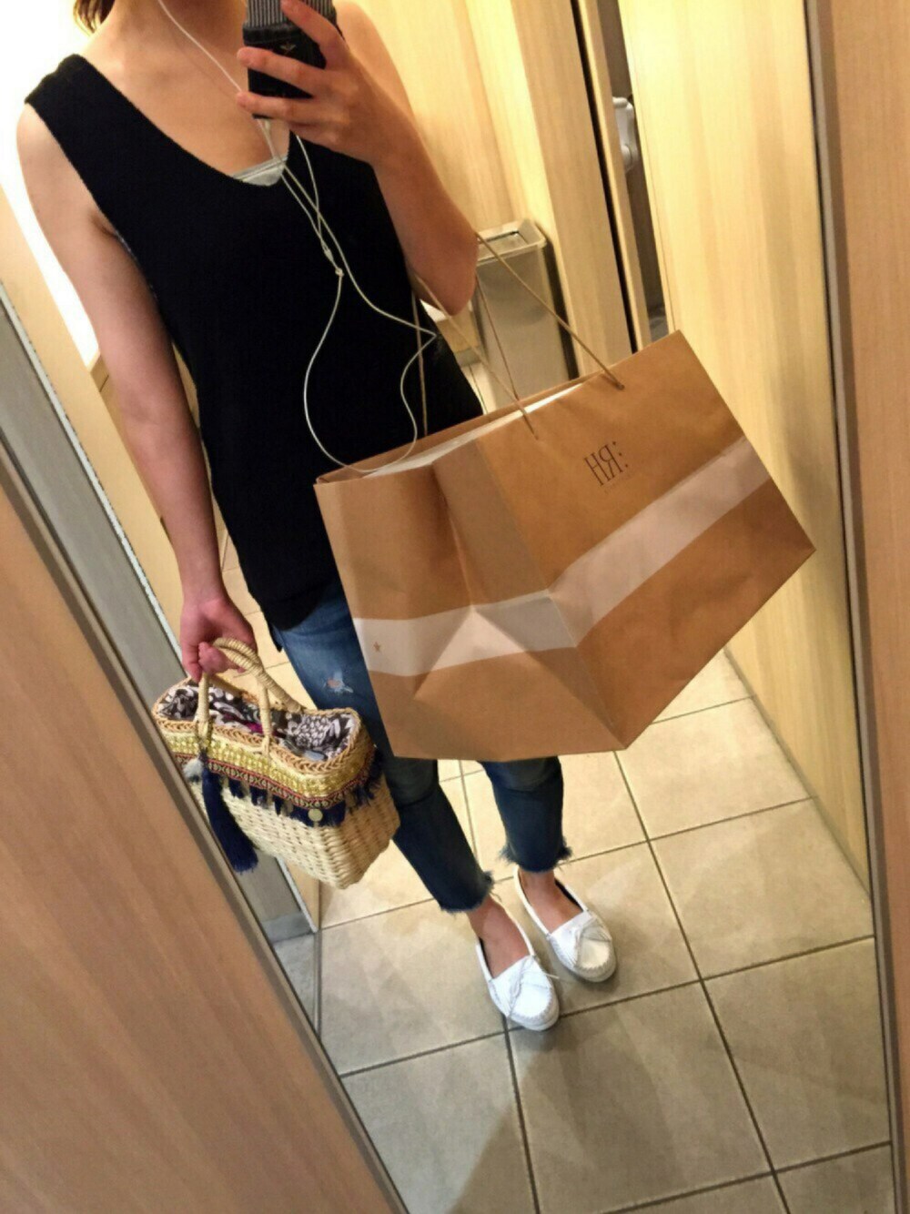 トップスは最近出たやつ。 ヘムデニムクラッシュver.も買ってしまった。 今更。笑 友達のお祝い買ったら思ったよりも大きくて 腕とれそう。 迎えにきてもらおう。👸💕笑 ご近所にはベナッシ大活躍。笑