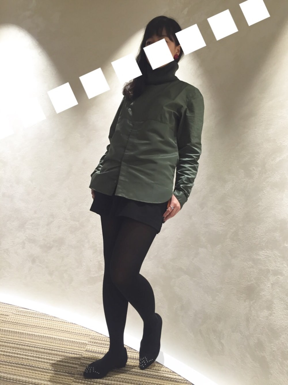 やっと着れたー!tttのMA-1シャツ!!上下でデザインも素材も切り替わっています。ゆるっとしたシルエットや長めのタートルネックが一々ツボ(^ω^) パンプスは今日もmadrasです。黒いタイツを合わせると飾りがはえる!白いぷちぷち!!