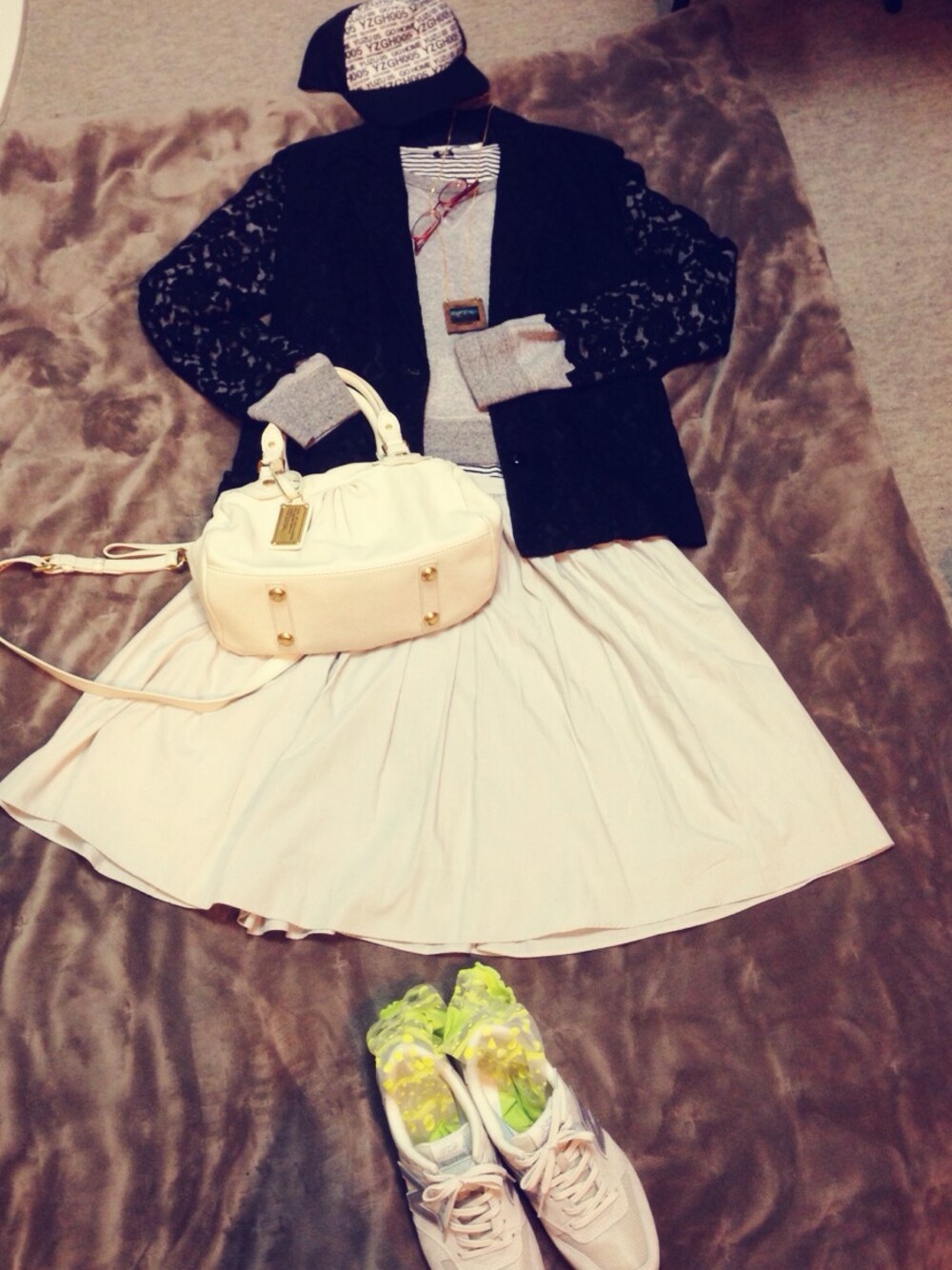 オトナ原宿系女子。(これでいいのか不安) キャップは後ろかぶりがいいかも〜 レースジャケット vintage スカート URBAN RESEARCH DOORS バッグ MARC BY MARC JACOBS
