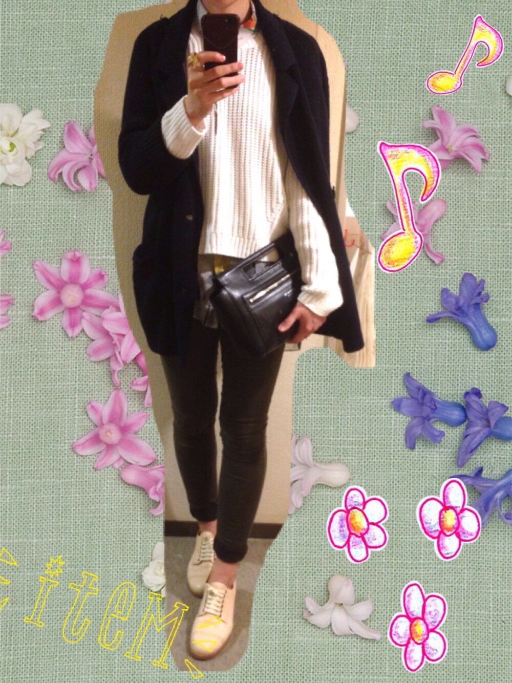 テロテロ半端丈シャツをベースに。 ニットジャケット united bamboo ニット H&M シャツ TOPSHOP シューズ TO&CO. クラッチバッグ COACH