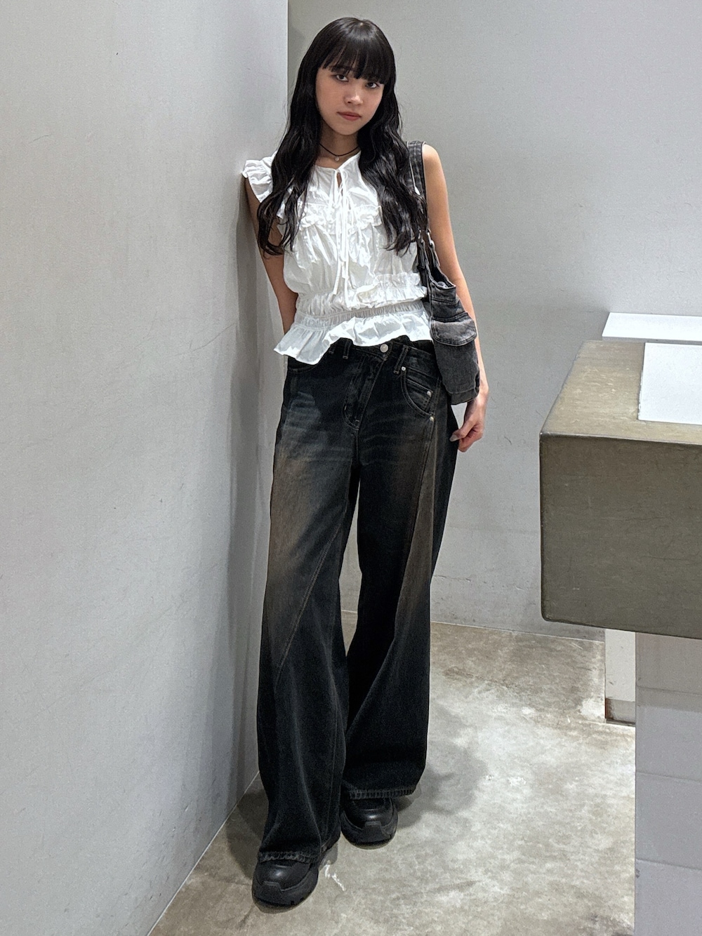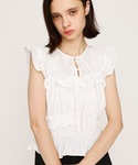 KAEDE(SLY 金沢フォーラス店)のシャツ/ブラウス「FRILL 2WAY RIBBON BL フリル 2ウェイ リボン ブラウス 夏服 秋服 ノースリーブトップス」を使ったコーディネート