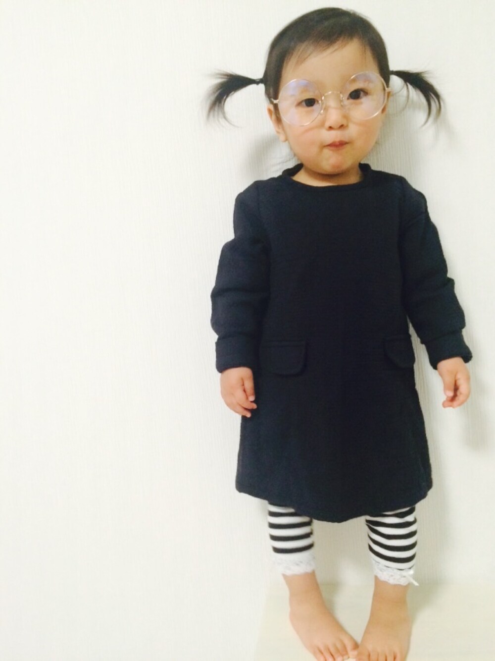 ブラック系のワンピース/ドレスを着用したキッズの春コーディネートの1枚目の写真