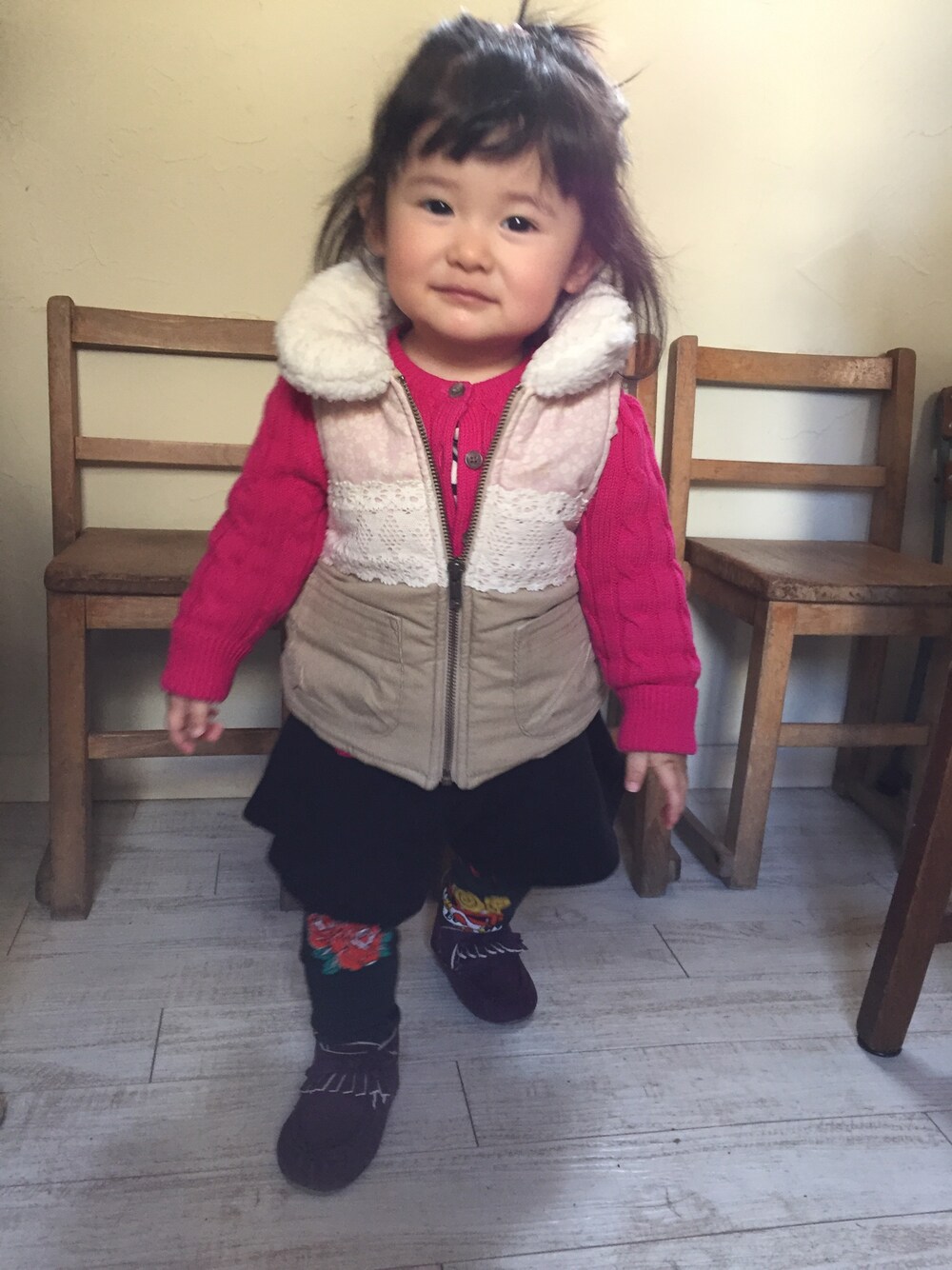 KAEmomのダウンベストを使ったコーディネート