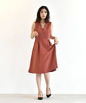 色物でも、こっくりとした落ち着いたカラーのワンピースだと派手になりすぎず◎ 可愛らしさだけではなく、やわらかい女性らしさも演出できます。