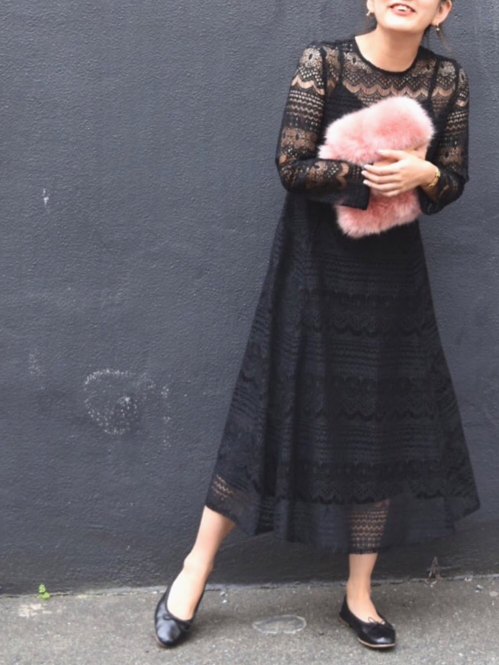 しっかりした生地感のパネルレースを全体に使用したワンピース。花柄レースは可愛らしすぎる…という方におすすめです。袖の透け感が絶妙なので、肌が透けている感じが少なく、楽に着ていただけます。結婚式や二次会などのフォーマルシーンは勿論、これからのホリデーシーズンに、クリスマスパーティーや彼とのディナー等にいかがでしょうか。♡(身長155cm/36着用)