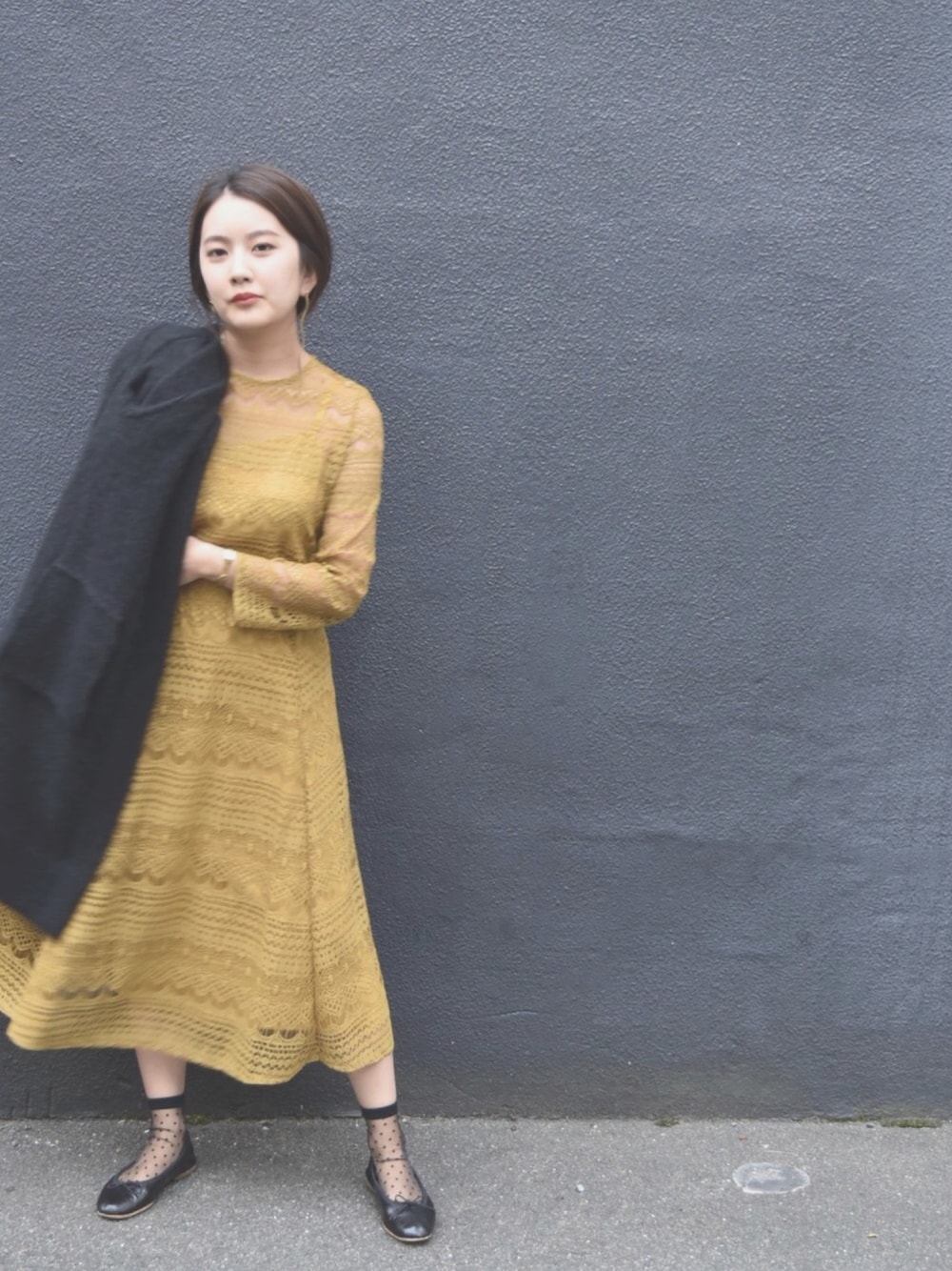 しっかりした生地感のパネルレースを全体に使用したワンピース。花柄レースは可愛らしすぎる…という方におすすめです。袖の透け感が絶妙なので、肌が透けている感じが少なく、楽に着ていただけます。結婚式や二次会などのフォーマルシーンは勿論、これからのホリデーシーズンに、クリスマスパーティーや彼とのディナー等にいかがでしょうか。♡(身長155cm/36着用)