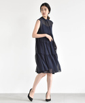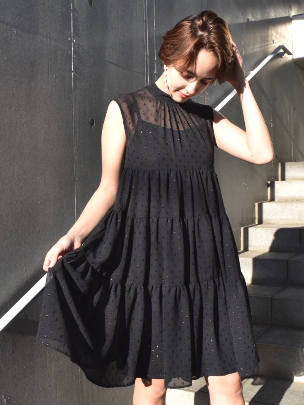 ラメ糸を織り込んだドットドビーシフォンに、たっぷりギャザーが贅沢なティアードワンピース♡ 動くと風を含んで揺れ、ドットがキラキラ光り、フェミニンな印象を演出してくれます。 気分も上がる、春におすすめのワンピース。 結婚式や二次会ドレスとしてはもちろん、ちょっとしたお出かけにも。