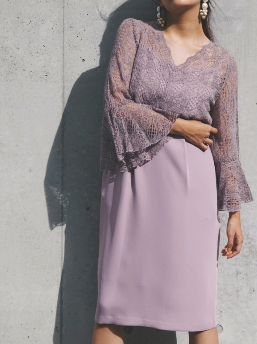 kaeneSTAFFのドレス「フレアースリーブレースコンビワンピース」を使ったコーディネート