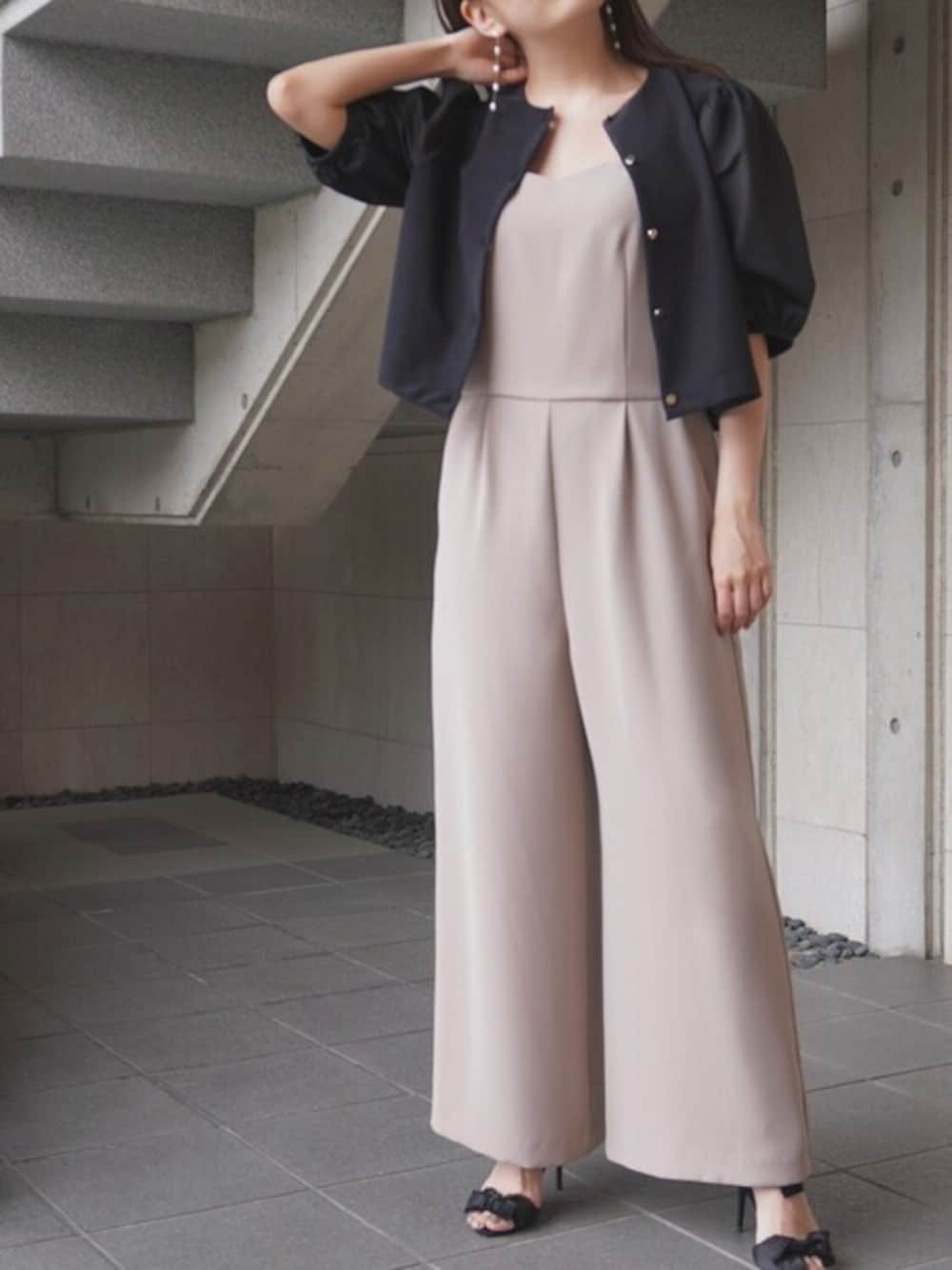 ニットのようなリブカットソーと、張りのあるタフタ素材のコンビボレロジャケット。 ボリューム袖と、身に着けるアクセサリー等を邪魔しない、小さくマットなゴールドボタンがポイントです。 結婚式ドレスやオールインワン、ノースリーブワンピースの羽織に、大活躍の一枚。