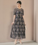 navy×pinkの配色が美しい、羽織り要らずの袖付きレースワンピース。 袖にギャザーが入っているので、より柔らかく女性らしい印象に。 レースの華やかさと落ち着いた色味が、結婚式などのお呼ばれにはもちろん、特別な日におすすめです。