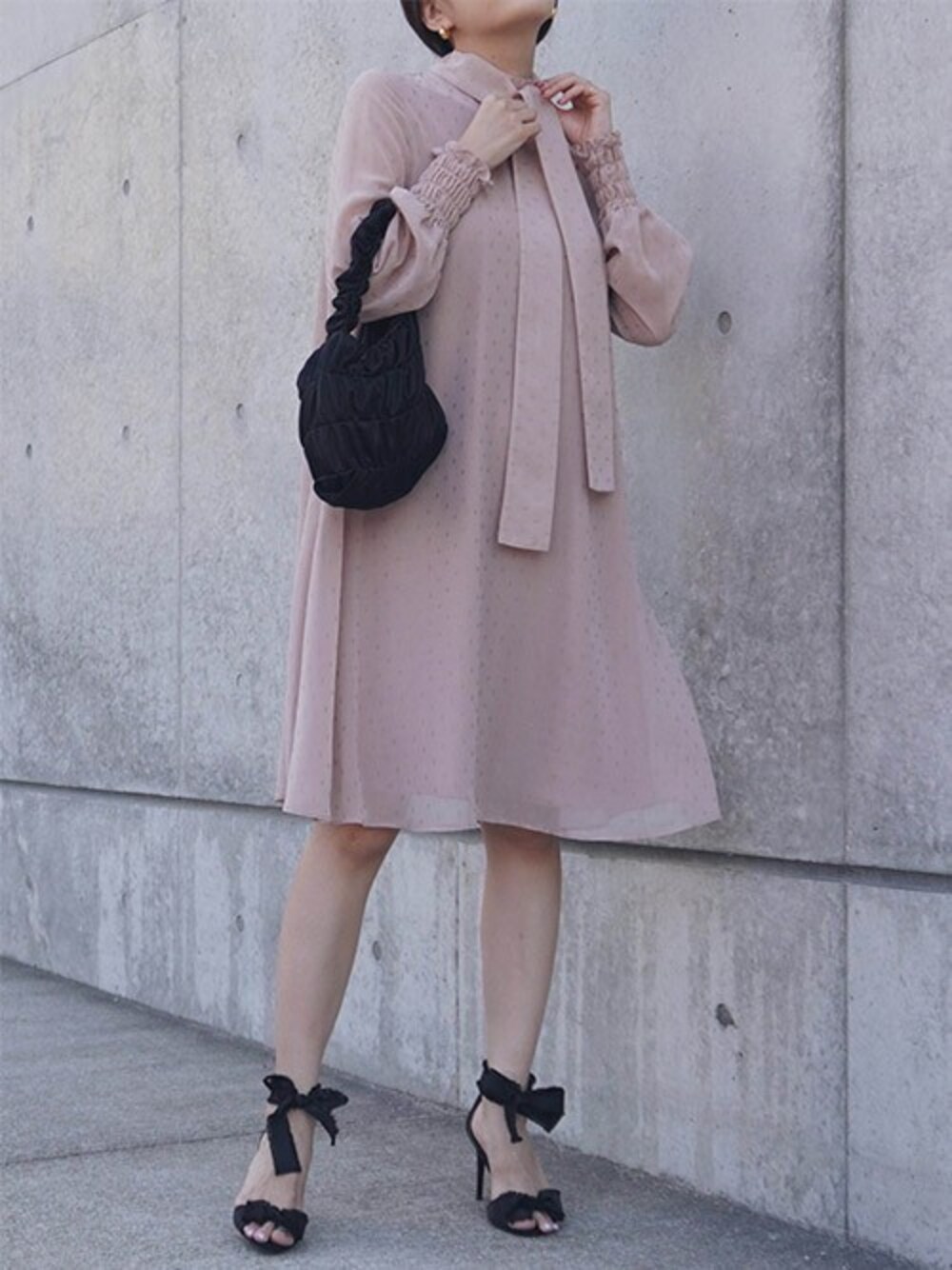 kaeneSTAFFのドレス「ラメドビーシャーリングワンピース」を使ったコーディネート