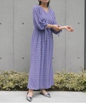 毛足の長い印象的なジャガード素材を使用したワンピース。 部分的に透け感があり、見た目よりも軽さがある生地感です。 Vネックラインは顔周りもすっきりとした印象に。 ふんわりとした袖が気になる二の腕周りもカバーします。 結婚式などのパーティーにはもちろん、お食事やフォーマルなシーン・普段使いもしやすいワンピースです。