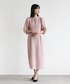 毛並みのあるジャガードの生地を使用し、華やかな印象を演出したドレス。 タックの位置や深さでバランスを取った立体的な袖のデザインが特徴的で、肘が隠れる丈に設定しています。 甘めのカラーも、生地がもつ印象とデザインで大人っぽい雰囲気に。 結婚式や二次会などのパーティーシーンにはもちろん、お食事会などのセミフォーマルなシーンにもオススメです。
