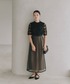 3D刺繍レースとエアリー感のあるオーガンジースカートの、配色合わせが印象的な1着。 広がりすぎないフィット& フレアーシルエットと、幅広パイピングのアクセントで、上品かつシックで特別感のあるドレスに仕上げました。 結婚式はもちろん、謝恩会や同窓会などのパーティーにもおすすめです。 ◇コーディネートアイテム バイカラーパンプス / 050014 サークルビーズバッグ / 040114